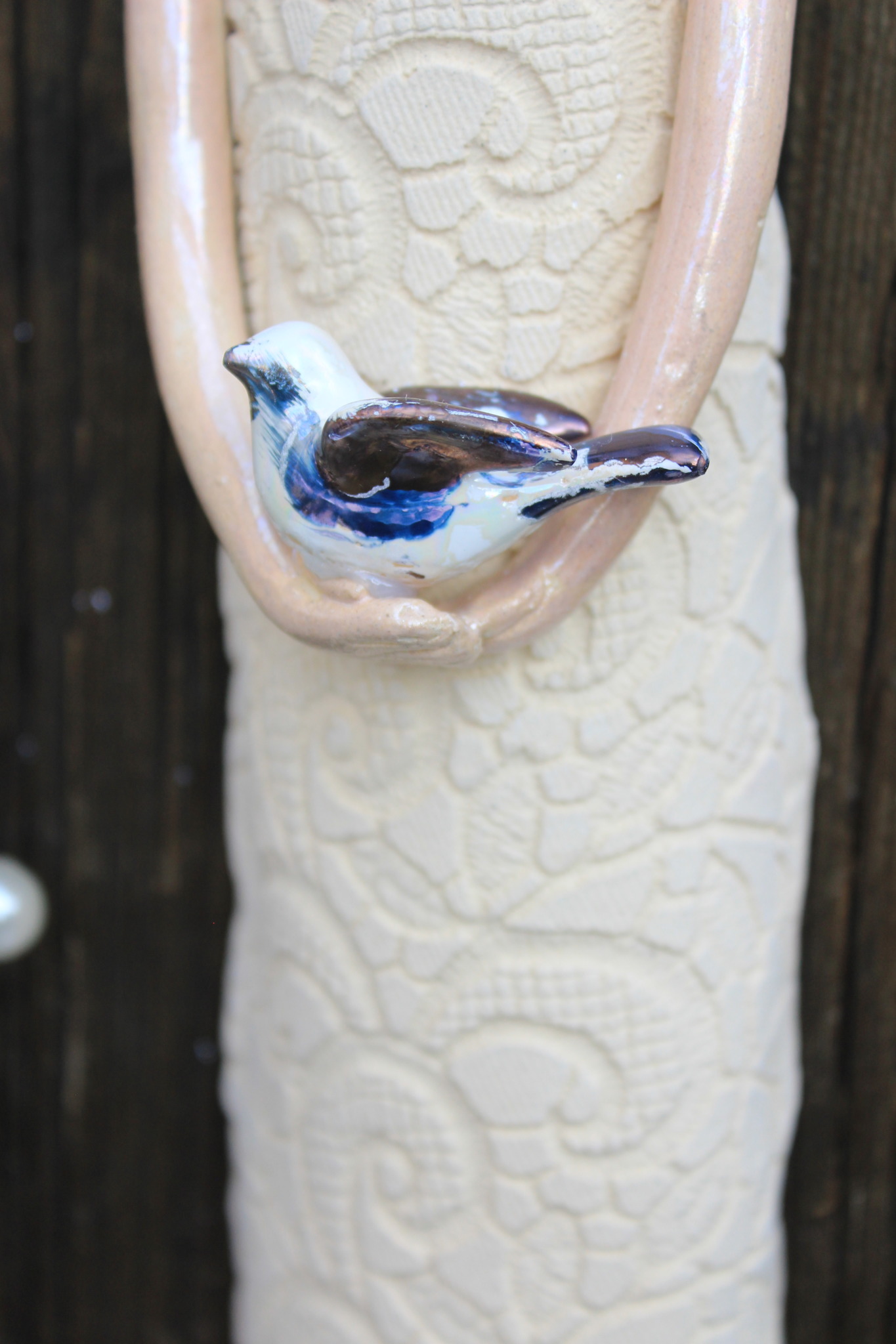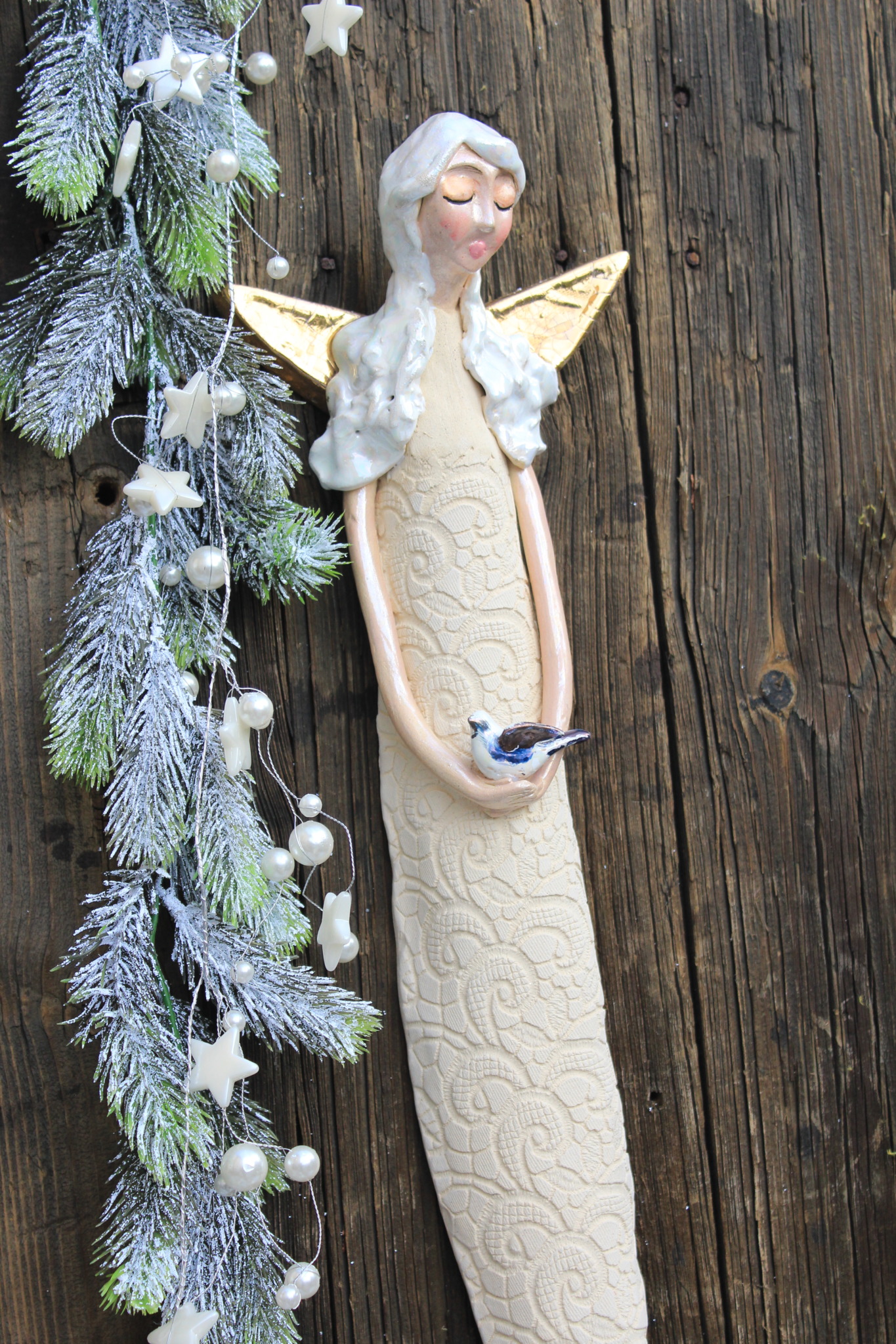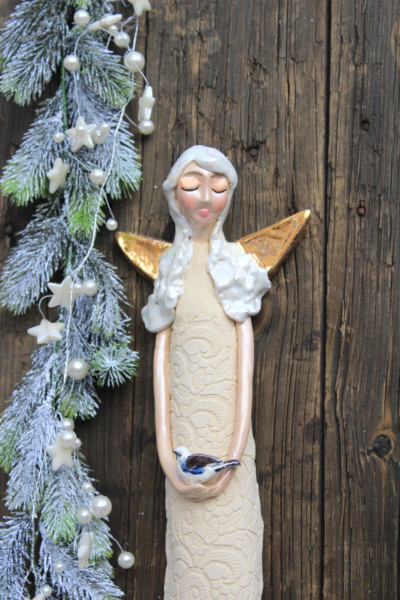 Anioł Stróż, to rzeźba wykonana ręcznie z gliny w pojedynczym egzemplarzu. Anioł ten jest trzykrotnie wypalany, szkliwiony a w detalach pokryty metalami szlachetnymi. Szczególnie polecamy tą rzeźbę, jako prezent na specjalne okazje takie jak, wesele bądź rocznice ślubu. Jej wyjątkowy wygląd sprawi, iż będzie to unikatowa ozdoba ścienna.