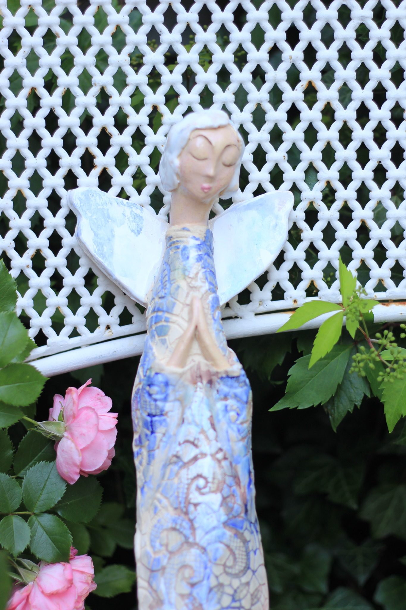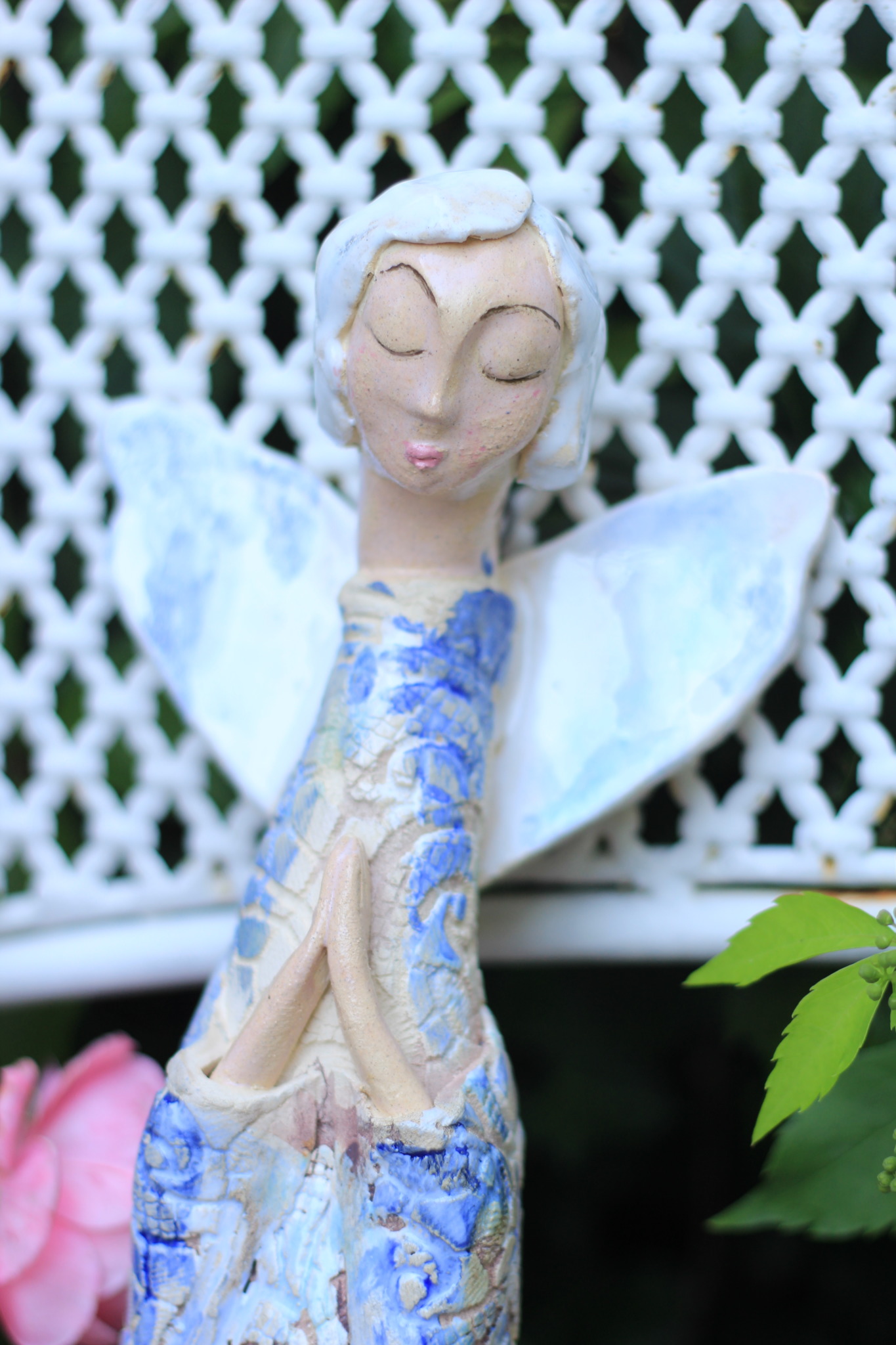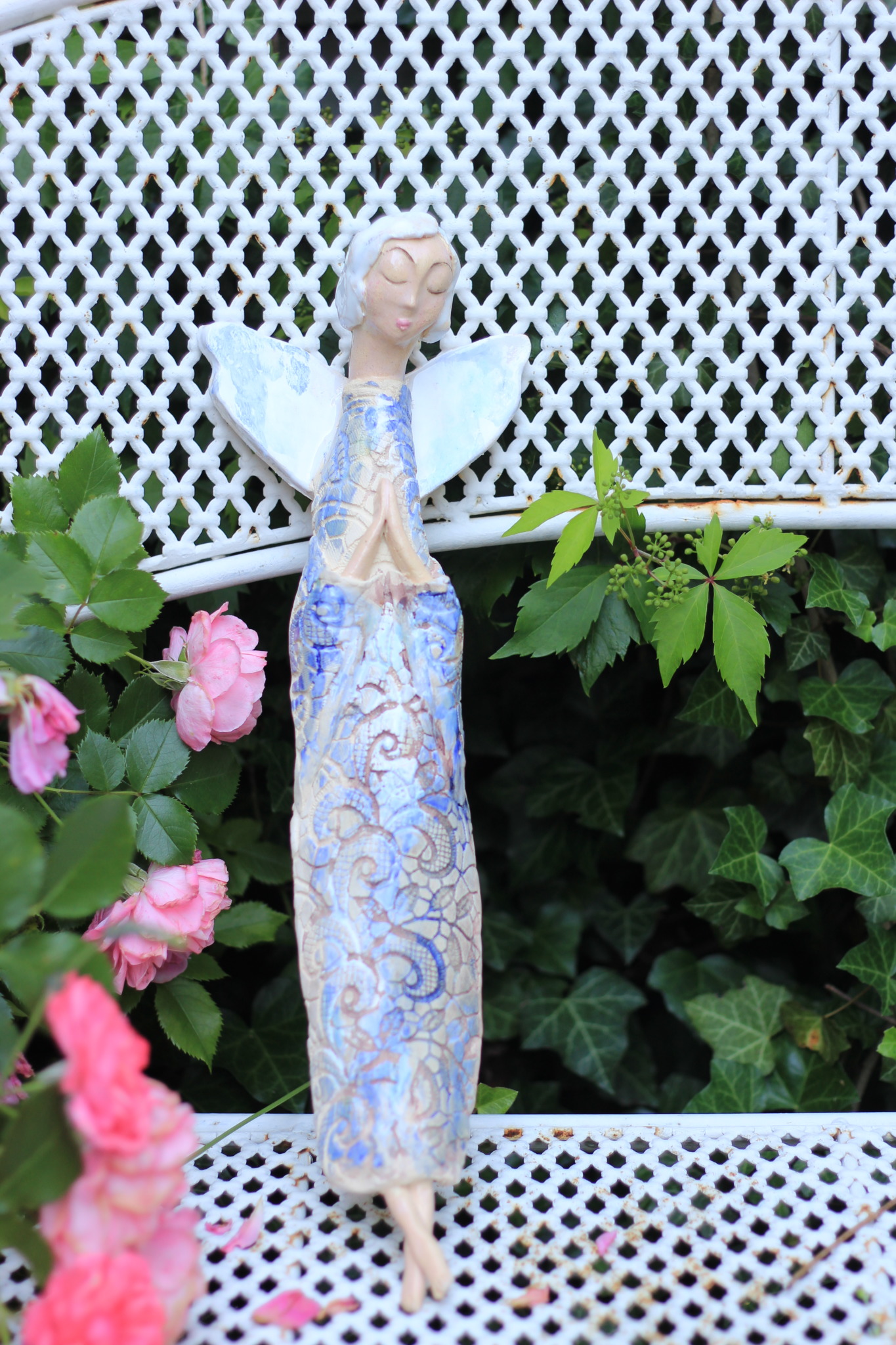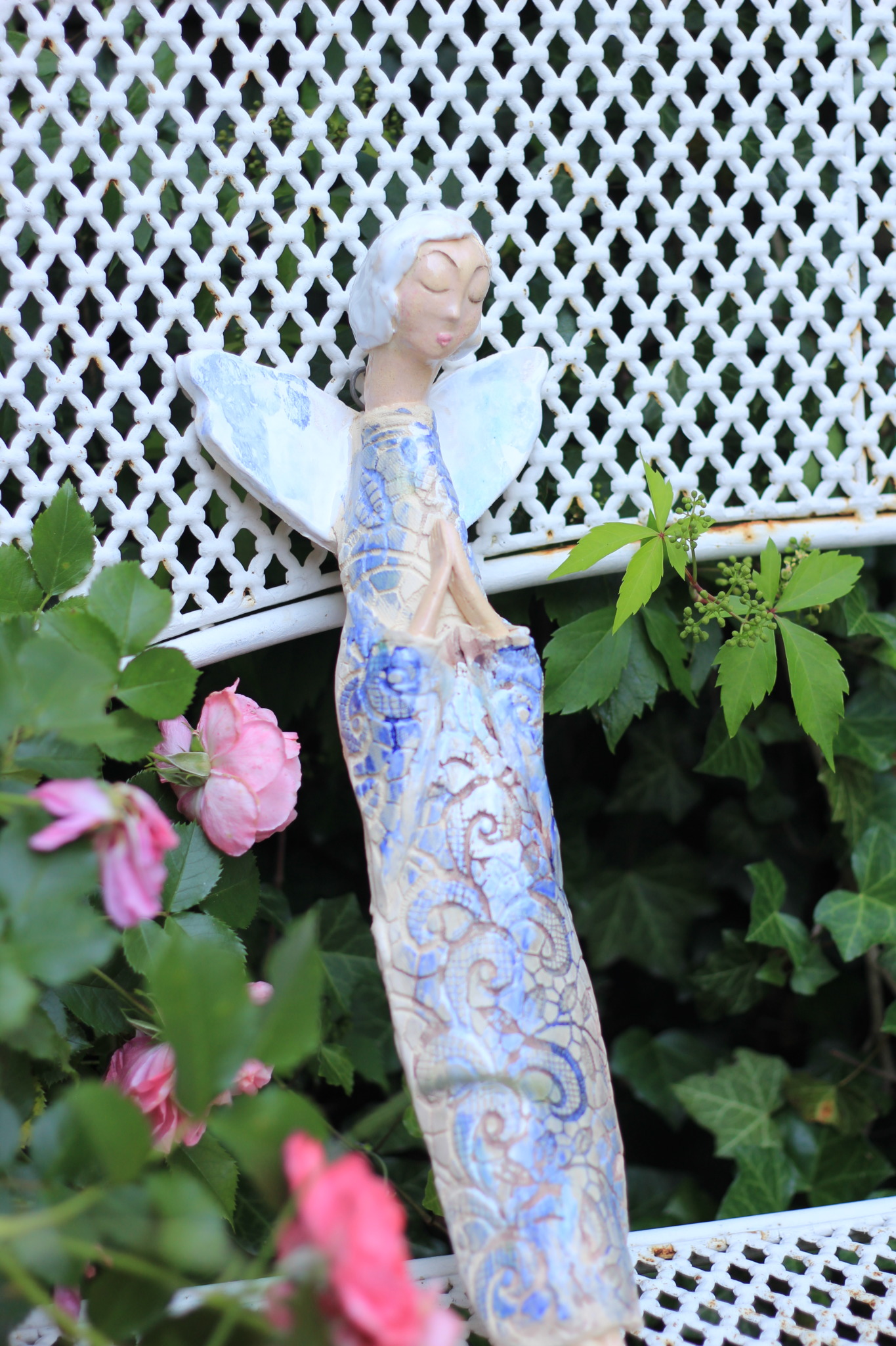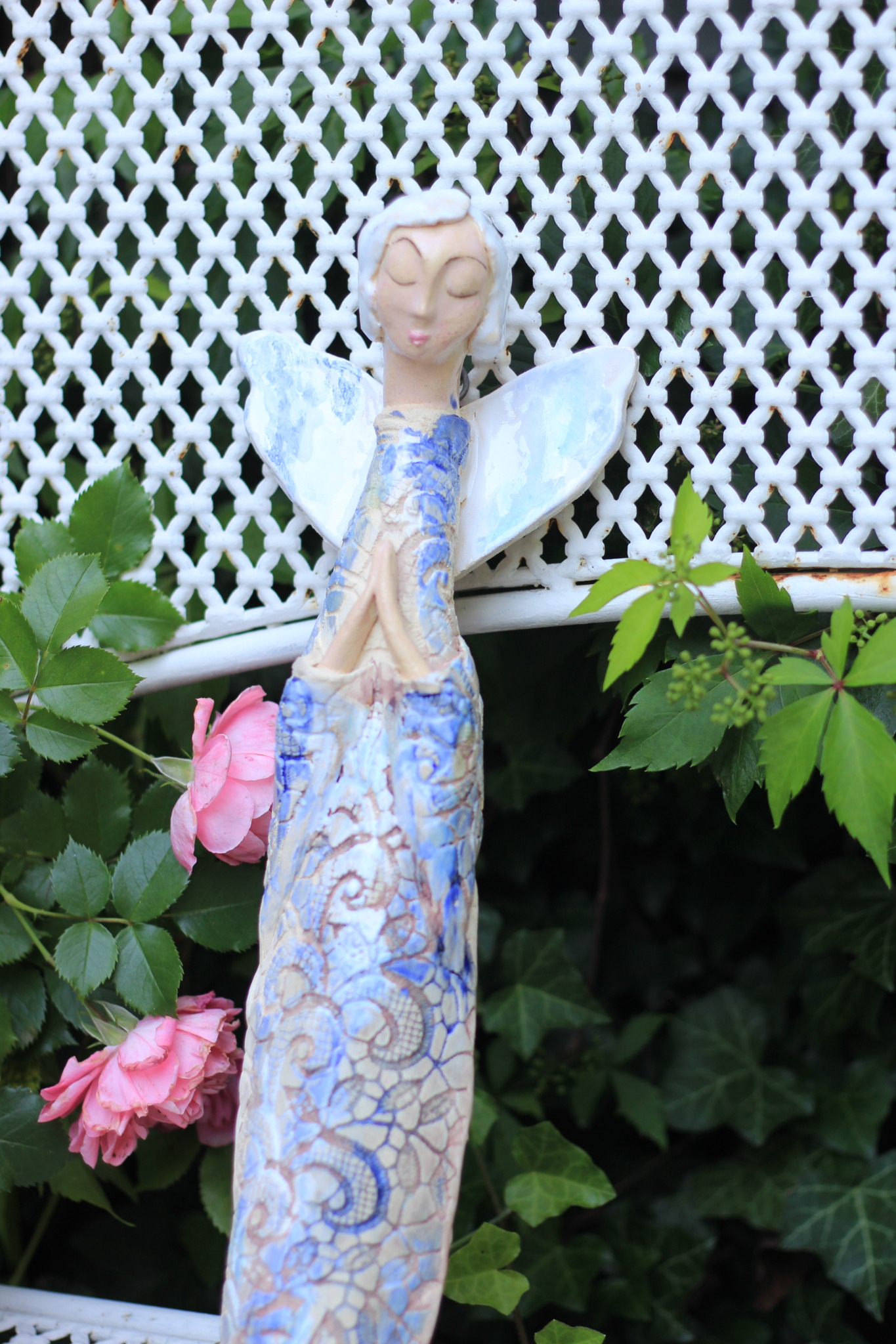 Anioł ceramiczny, wykonany ręcznie z gliny w pojedynczym egzemplarzu. Dwukrotnie wypalany oraz szkliwiony. Stanowi świetną propozycję dla unikatowego prezentu dla bliskiej osoby oraz nietuzinkową ozdobę ścienną.