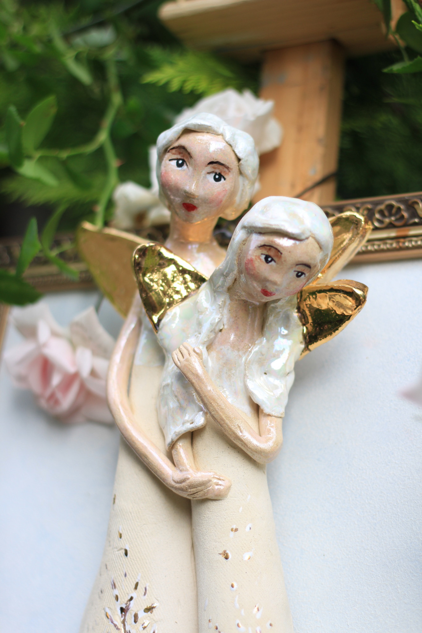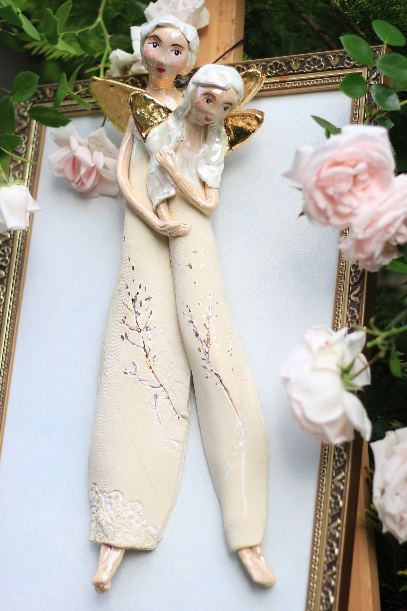 • Anielska Para, to rzeźba wykonana ręcznie z gliny w pojedynczym egzemplarzu. Para ta jest trzykrotnie wypalana, szkliwiona a w detalach pokryta metalami szlachetnymi. Szczególnie polecamy tą rzeźbę, jako prezent na specjalne okazje takie jak, wesele bądź rocznice ślubu. Jej wyjątkowy wygląd sprawi, iż będzie to unikatowa ozdoba ścienna.