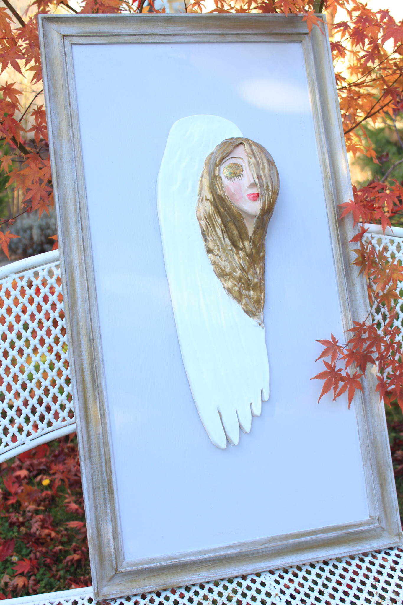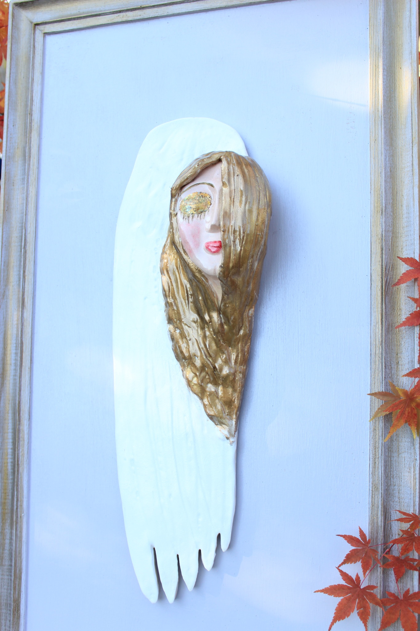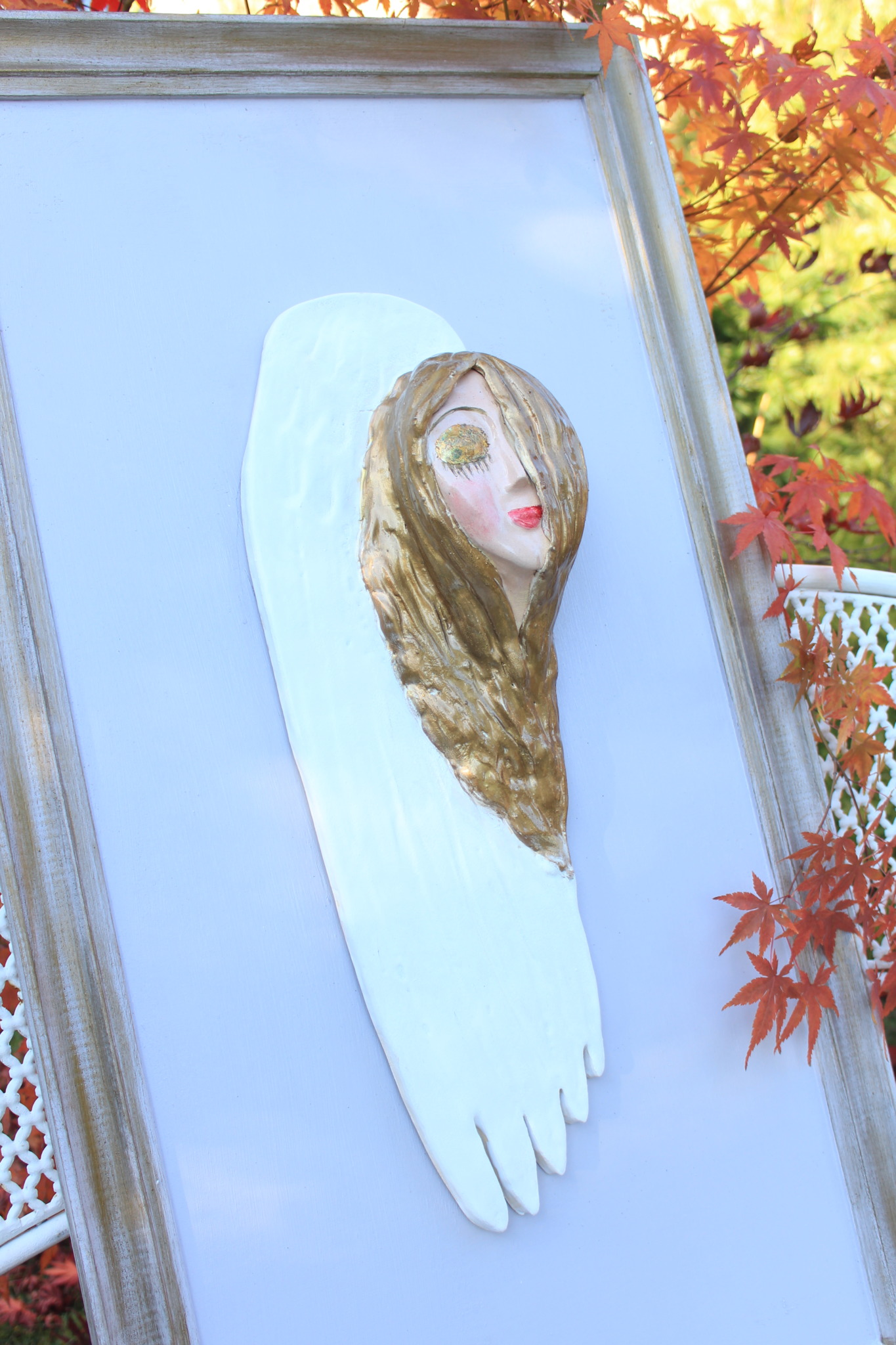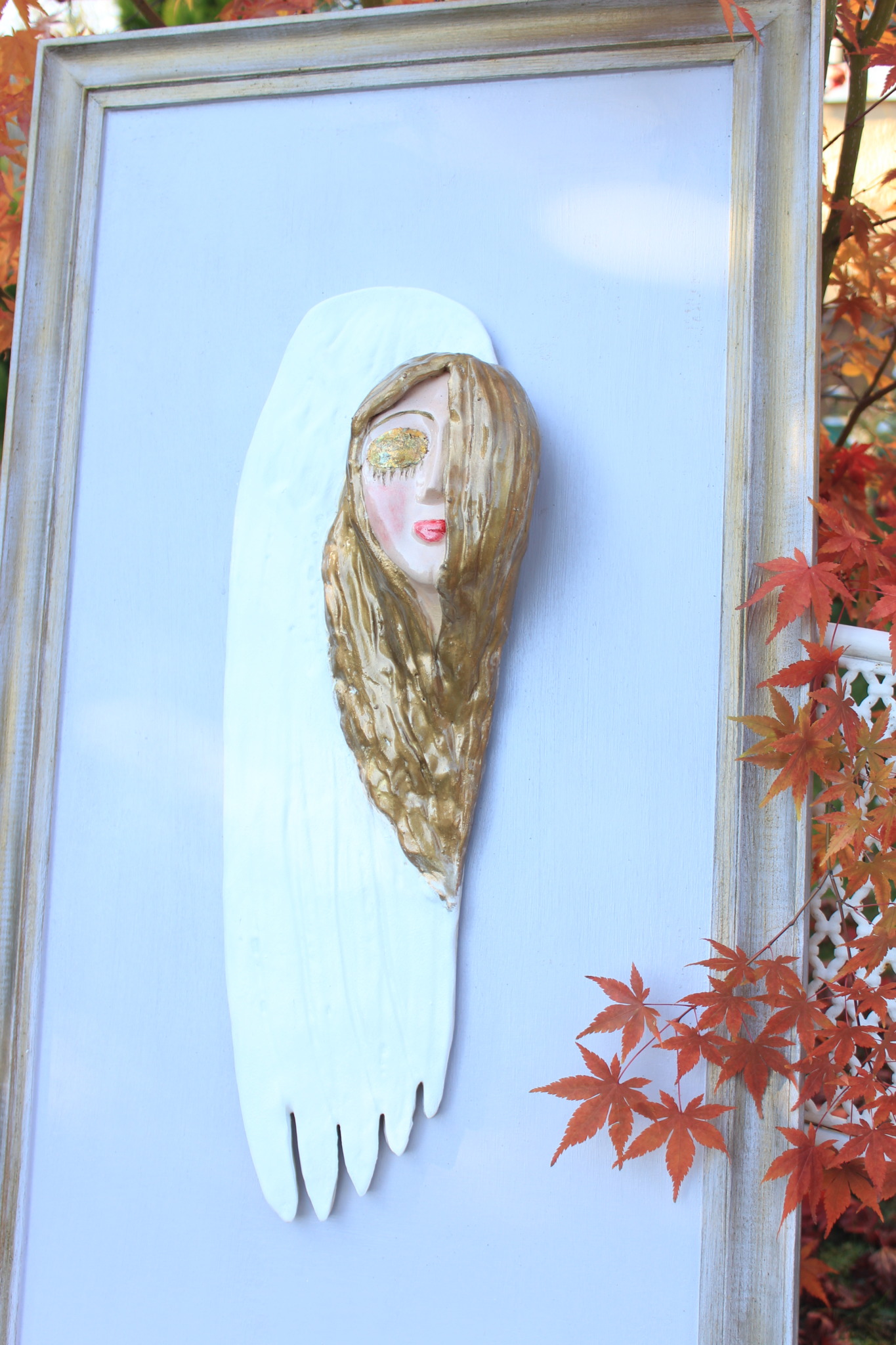 Ceramiczny anioł jednoskrzydły, to rzeźba wykonana ręcznie w pojedynczym egzemplarzu. Anioł ten jest dwukrotnie wypalany, szkliwiony wykończony techniką własną. Cały anioł przymocowany został na stałe do deski – ramy uprzednio właściwie zabezpieczonej. Szczególnie polecamy tą rzeźbę, jako prezent na specjalne okazje takie jak, śluby bądź rocznice ślubu. Jej wyjątkowy wygląd sprawi, iż będzie to unikatowa ozdoba ścienna.