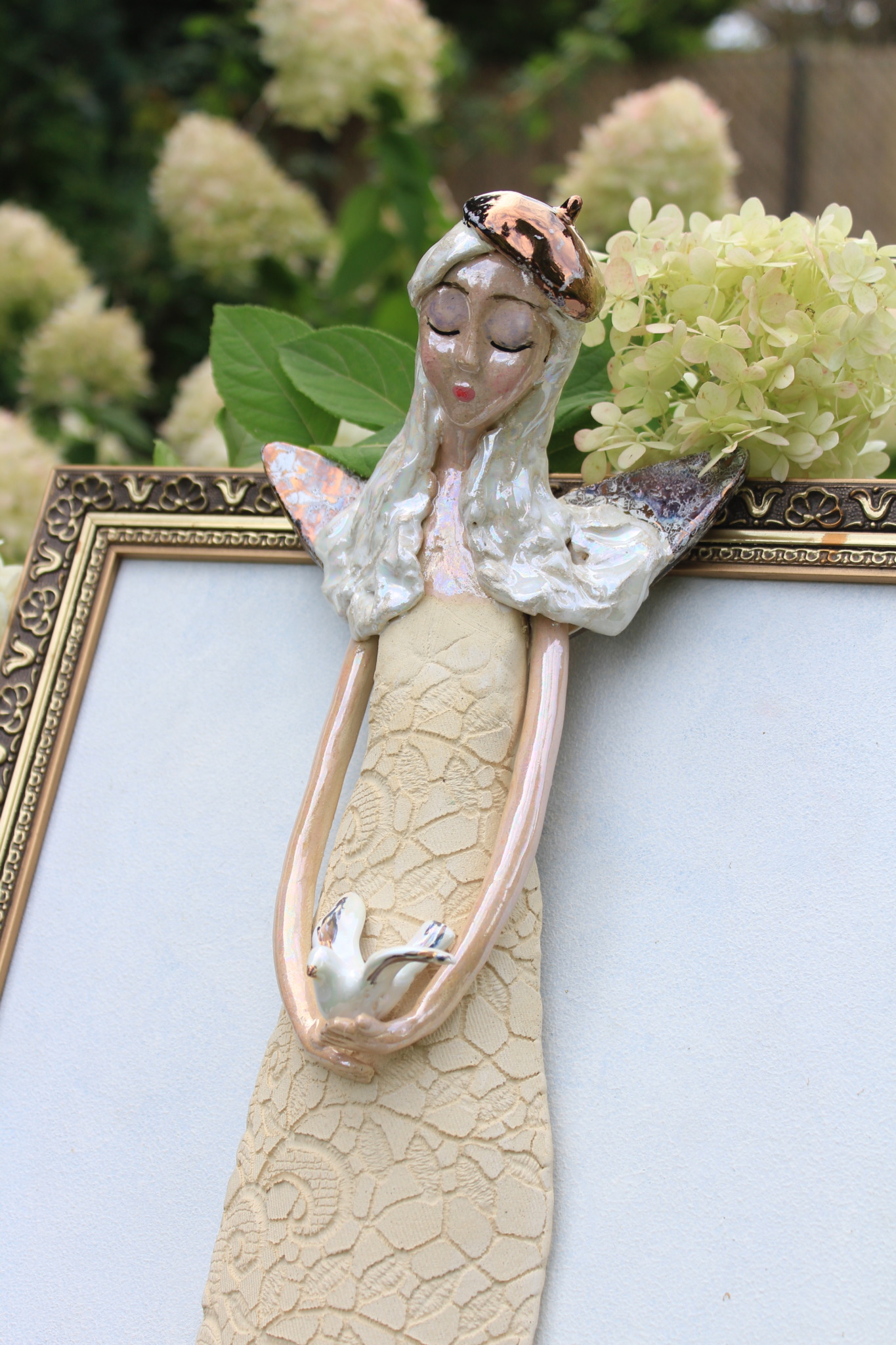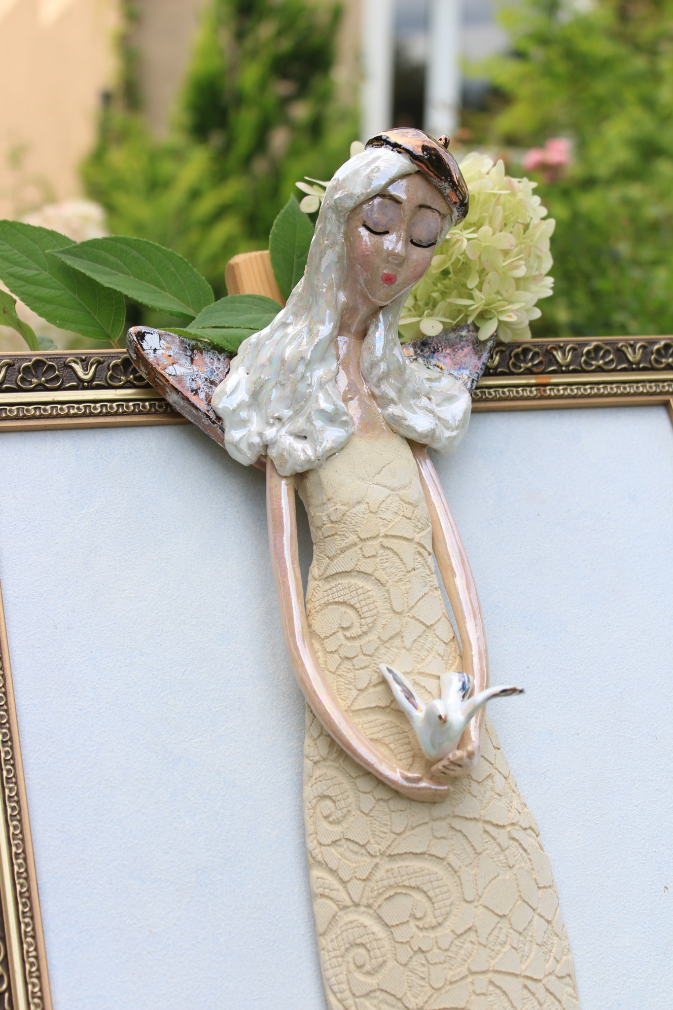 Anioł w bereciku, to rzeźba wykonana ręcznie z gliny w pojedynczym egzemplarzu. Anioł ten jest trzykrotnie wypalany, szkliwiony a w detalach pokryty metalami szlachetnymi. Szczególnie polecamy tą rzeźbę, jako prezent na specjalne okazje takie jak, wesele bądź rocznice ślubu. Jej wyjątkowy wygląd sprawi, iż będzie to unikatowa ozdoba ścienna.
