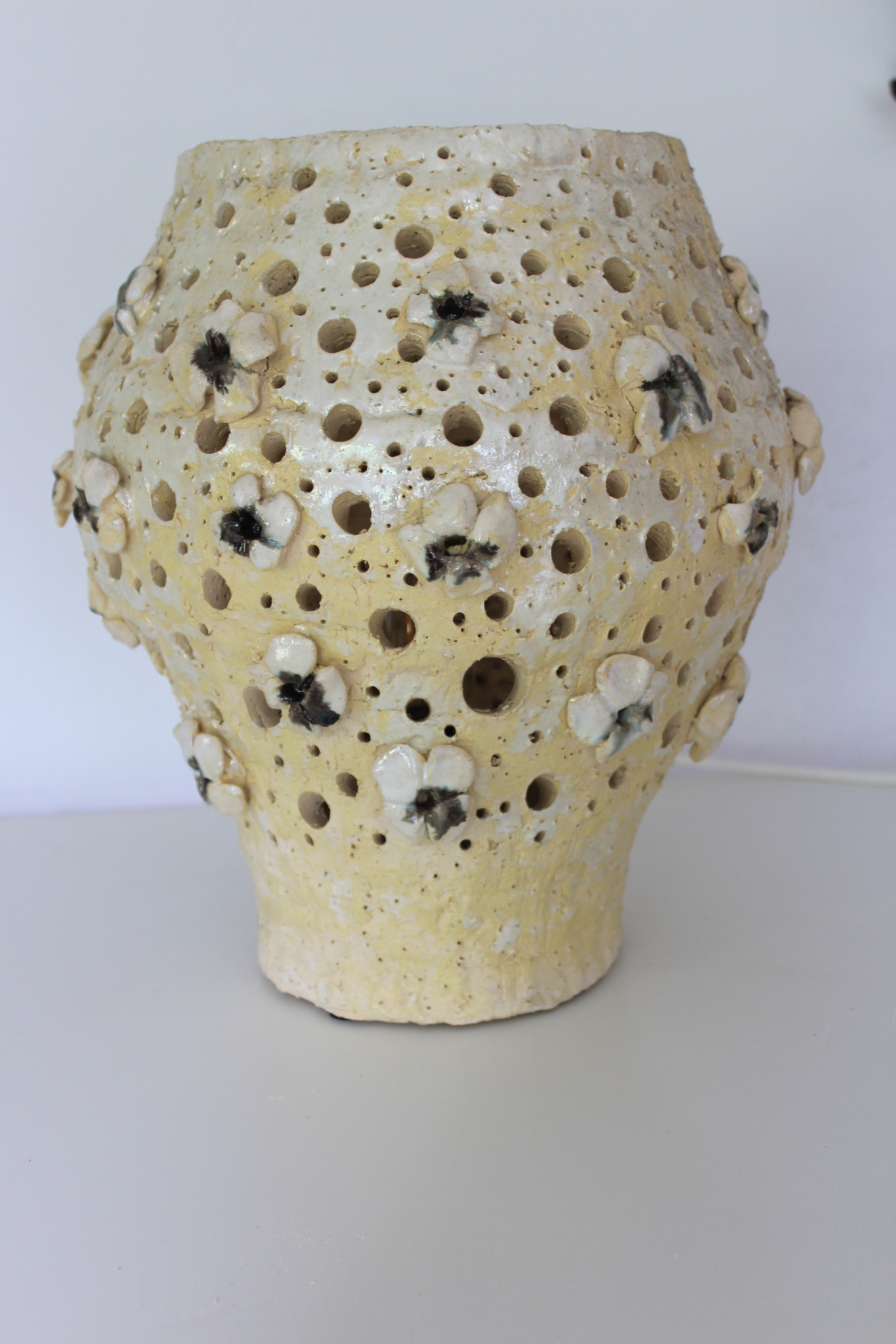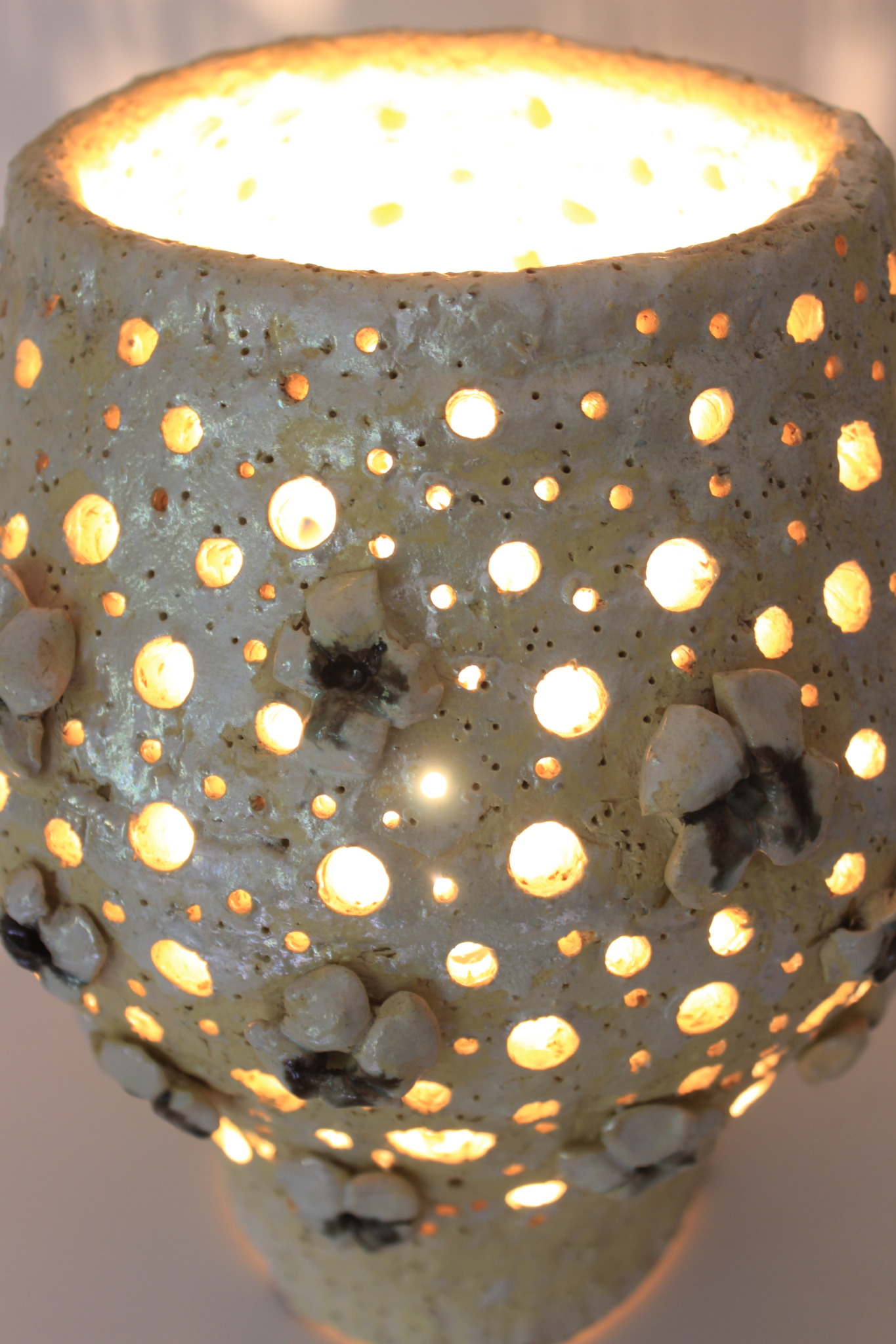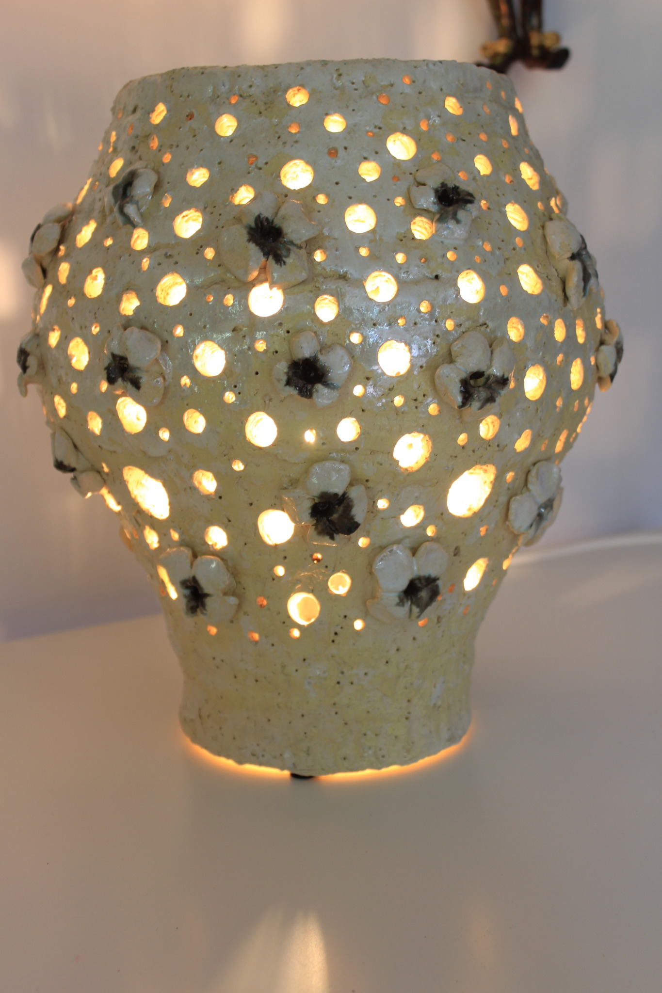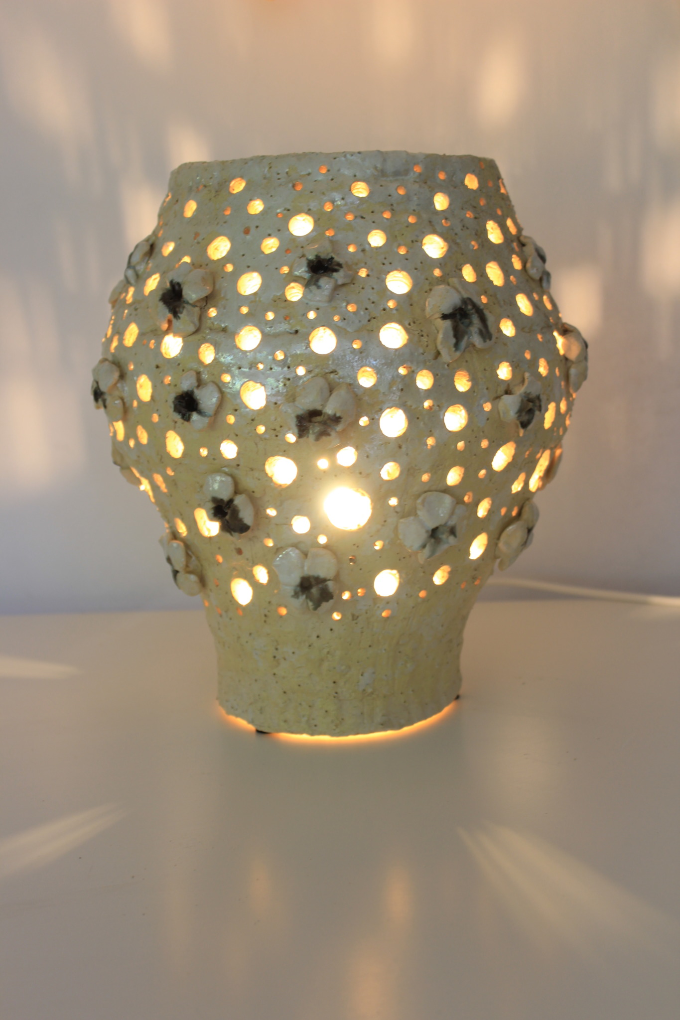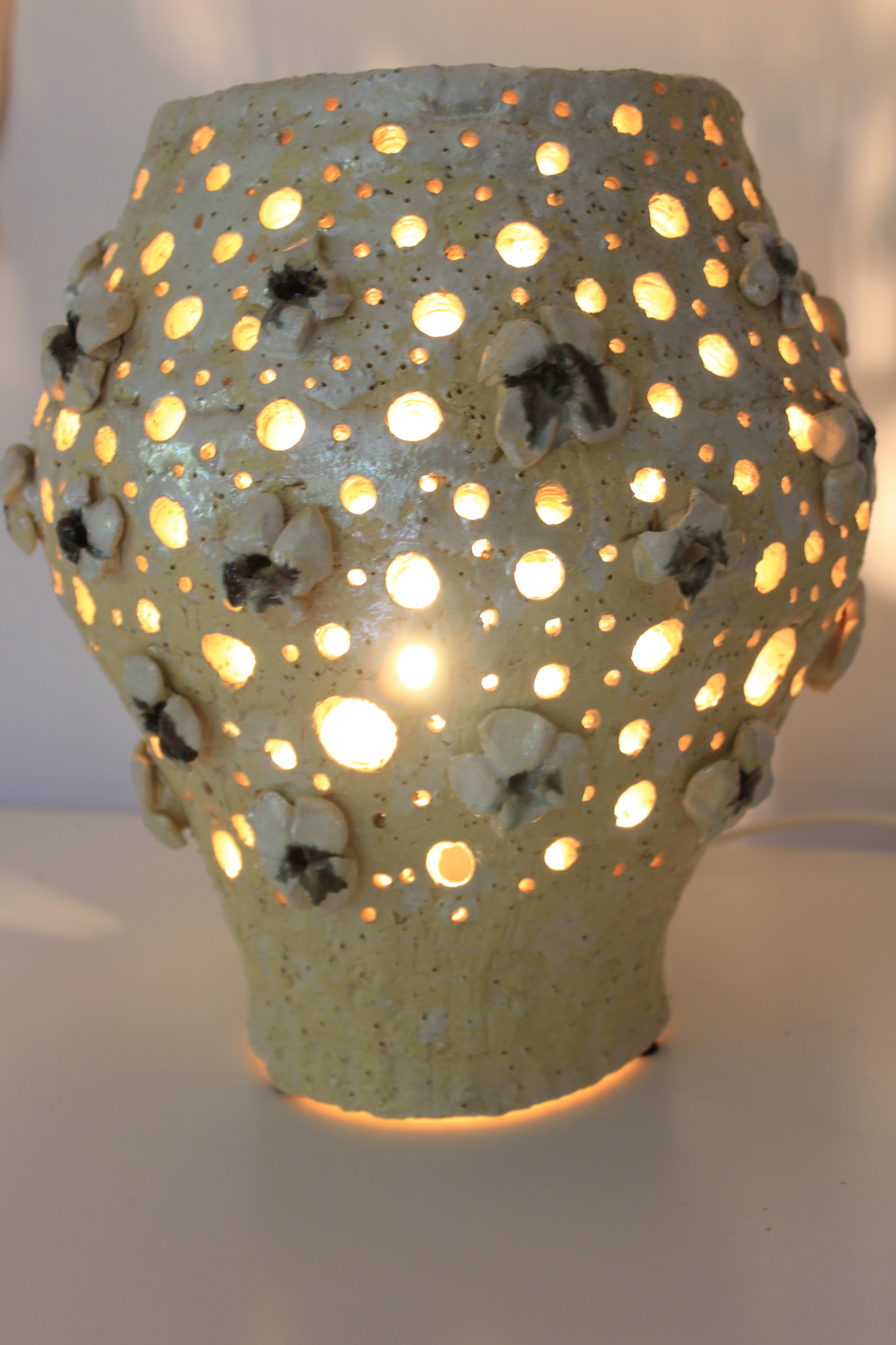 Ceramiczna lampa wykonana ręcznie z gliny szamotowej w pojedynczym egzemplarzu. Lampa jest dwukrotnie wypalana oraz szkliwiona w detalach. Szczególnie polecamy tą lampę jako nieszablonową ozdobę wnętrza. Do lampy dołączona jest żarówka LED 40w wraz z oprawką oraz przewodem o długości 2m.