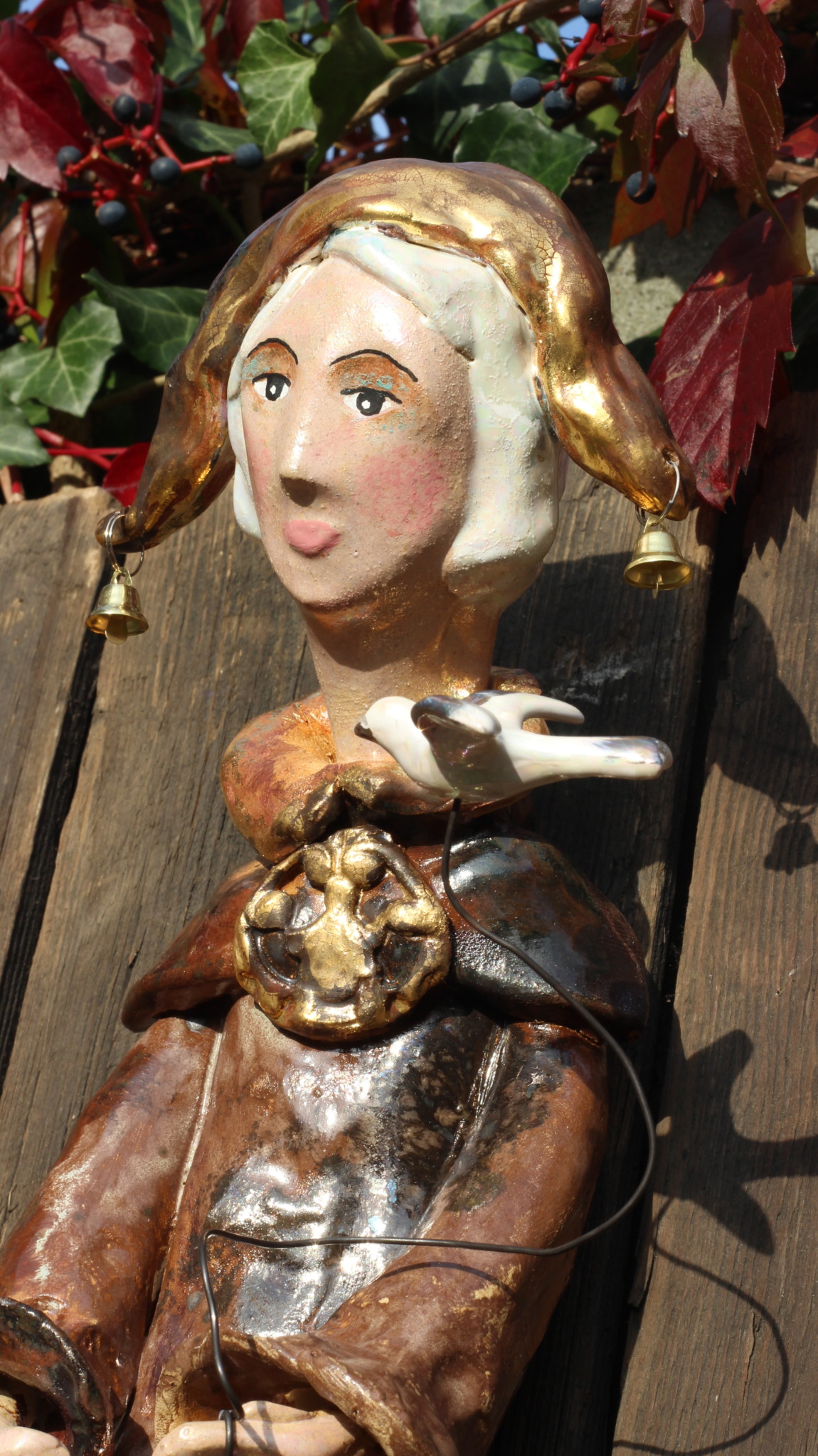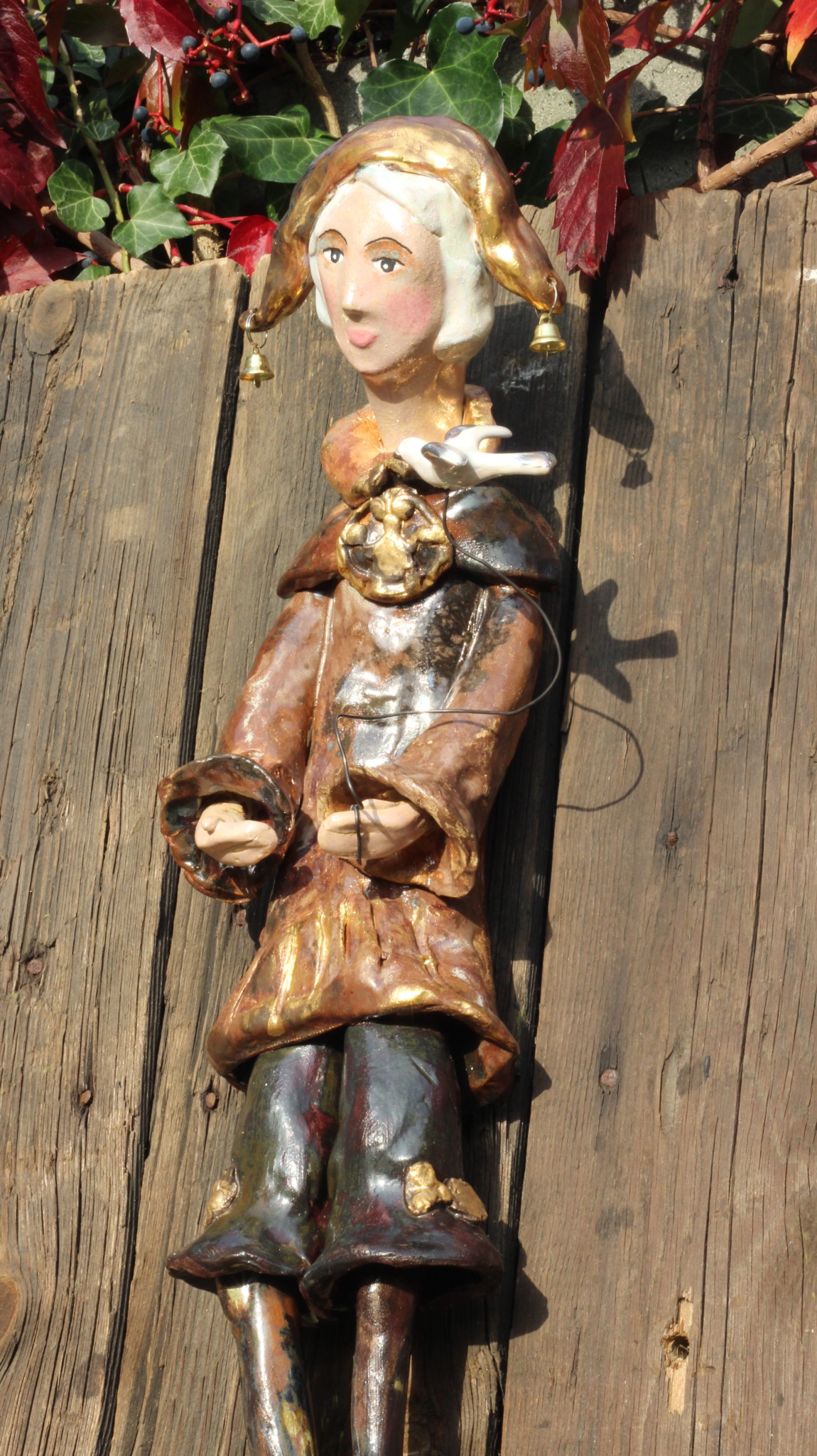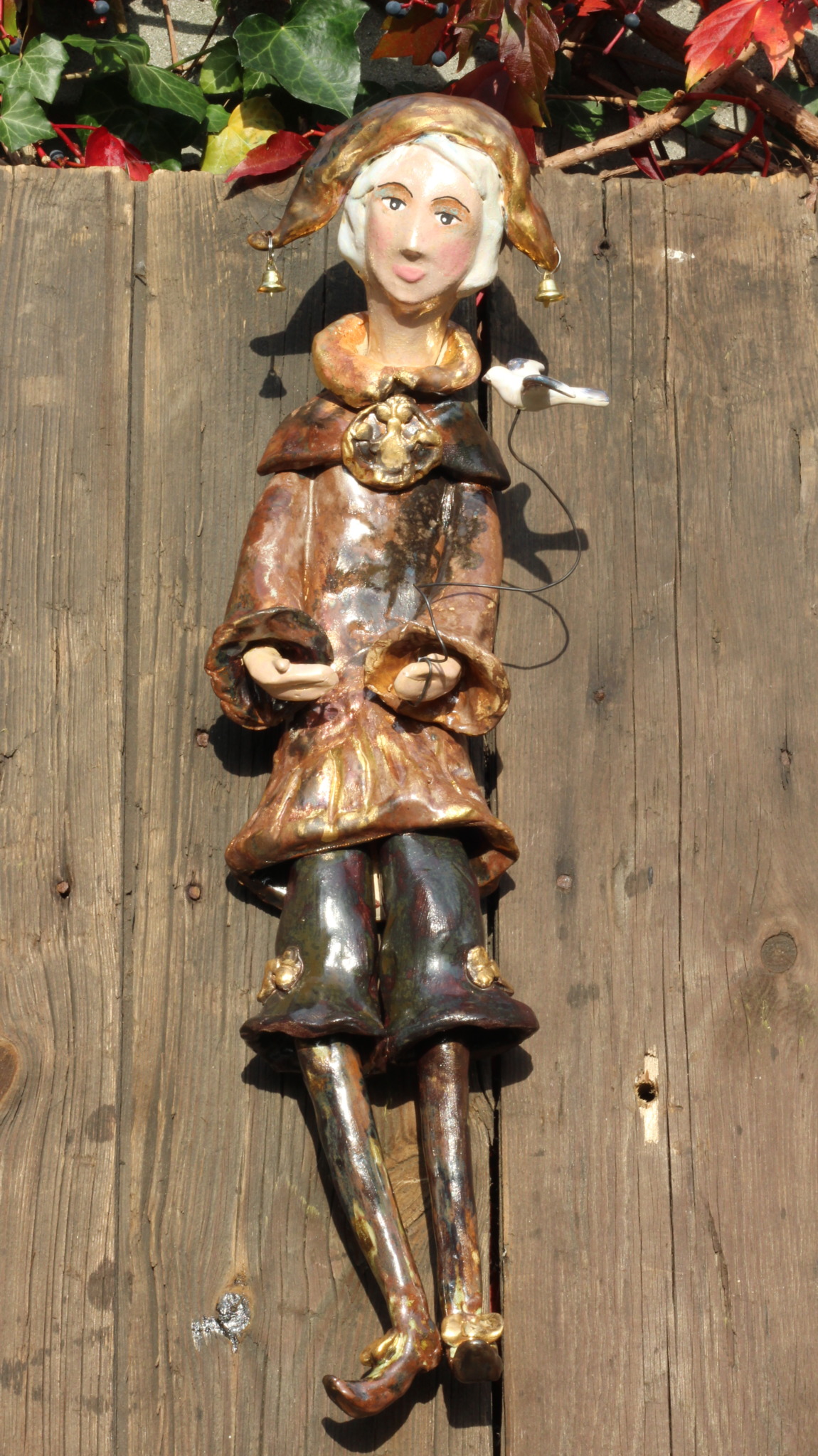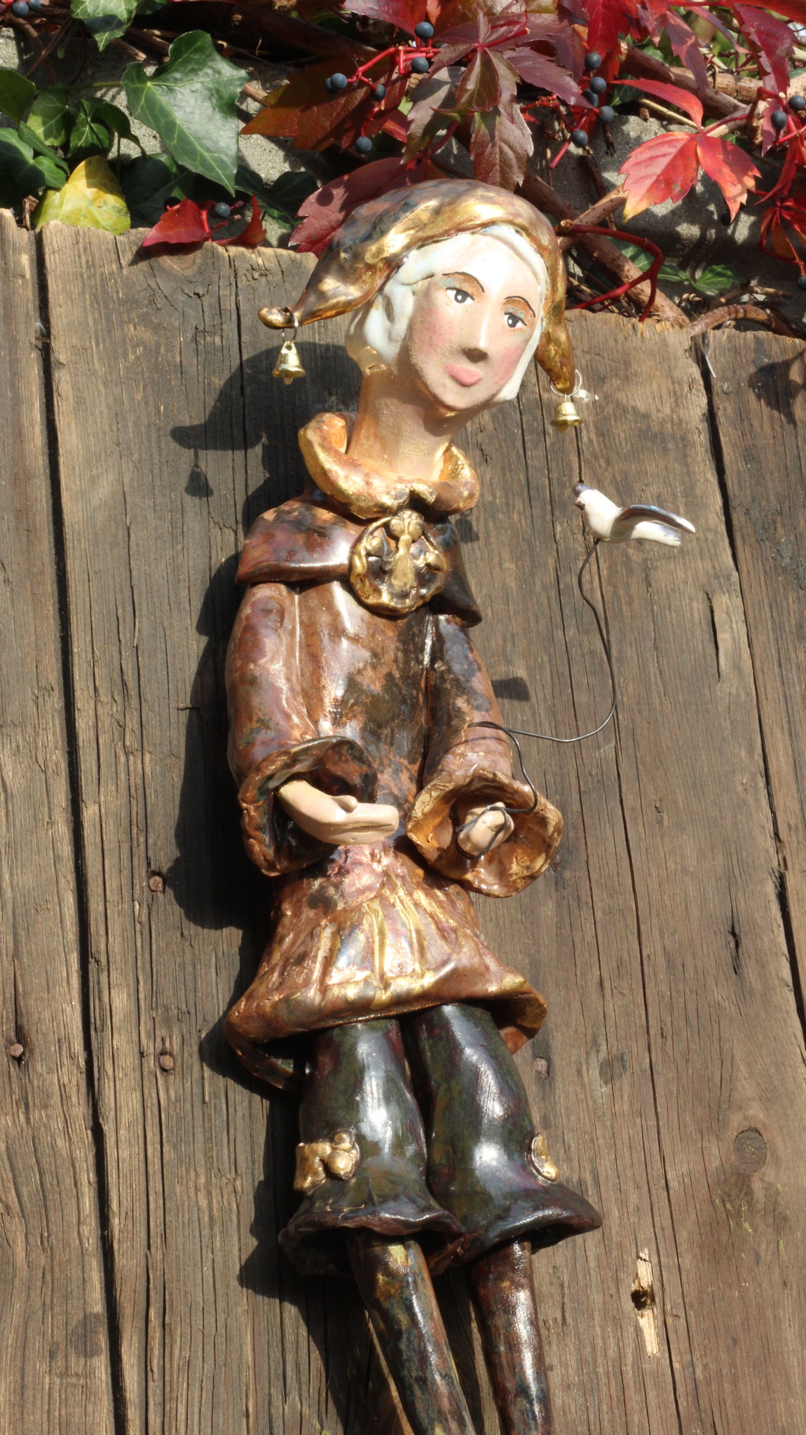 Pierrot wykonany ręcznie z gliny w pojedynczym egzemplarzu. Trzykrotnie wypalany, szkliwiony i w detalach zdobiony metalami szlachetnymi. Stanowi świetną propozycję dla unikatowego prezentu dla bliskiej osoby oraz oryginalną ozdobę ścienną.