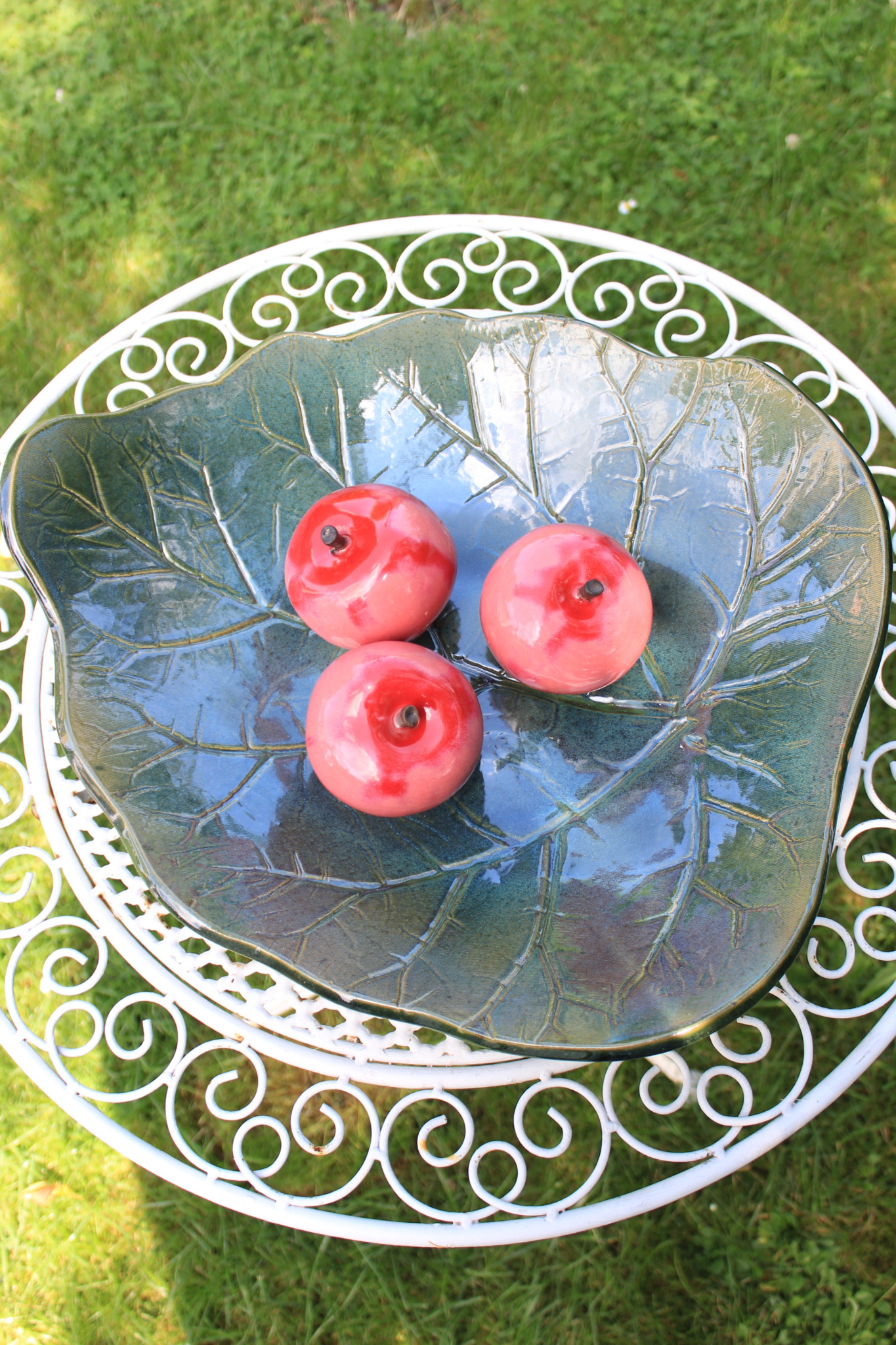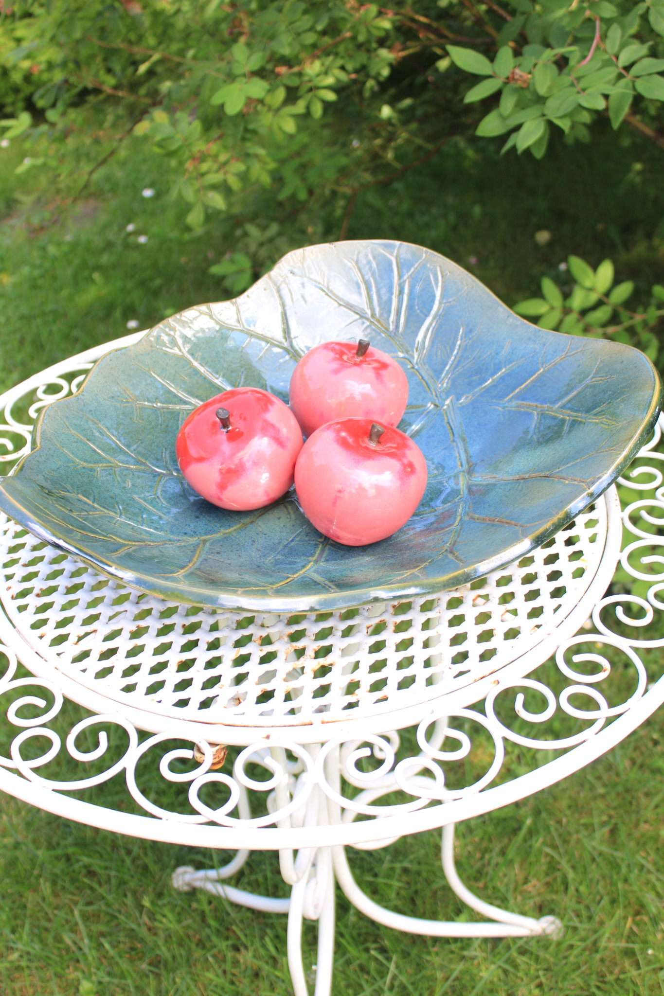 Ceramiczna Patera w formie liścia duża. Patera jest dwukrotnie wypalana i obustronnie pokryta szkliwem. Sprawdzi się idealnie jako dekoracja kuchenna pod owoce lub warzywa.