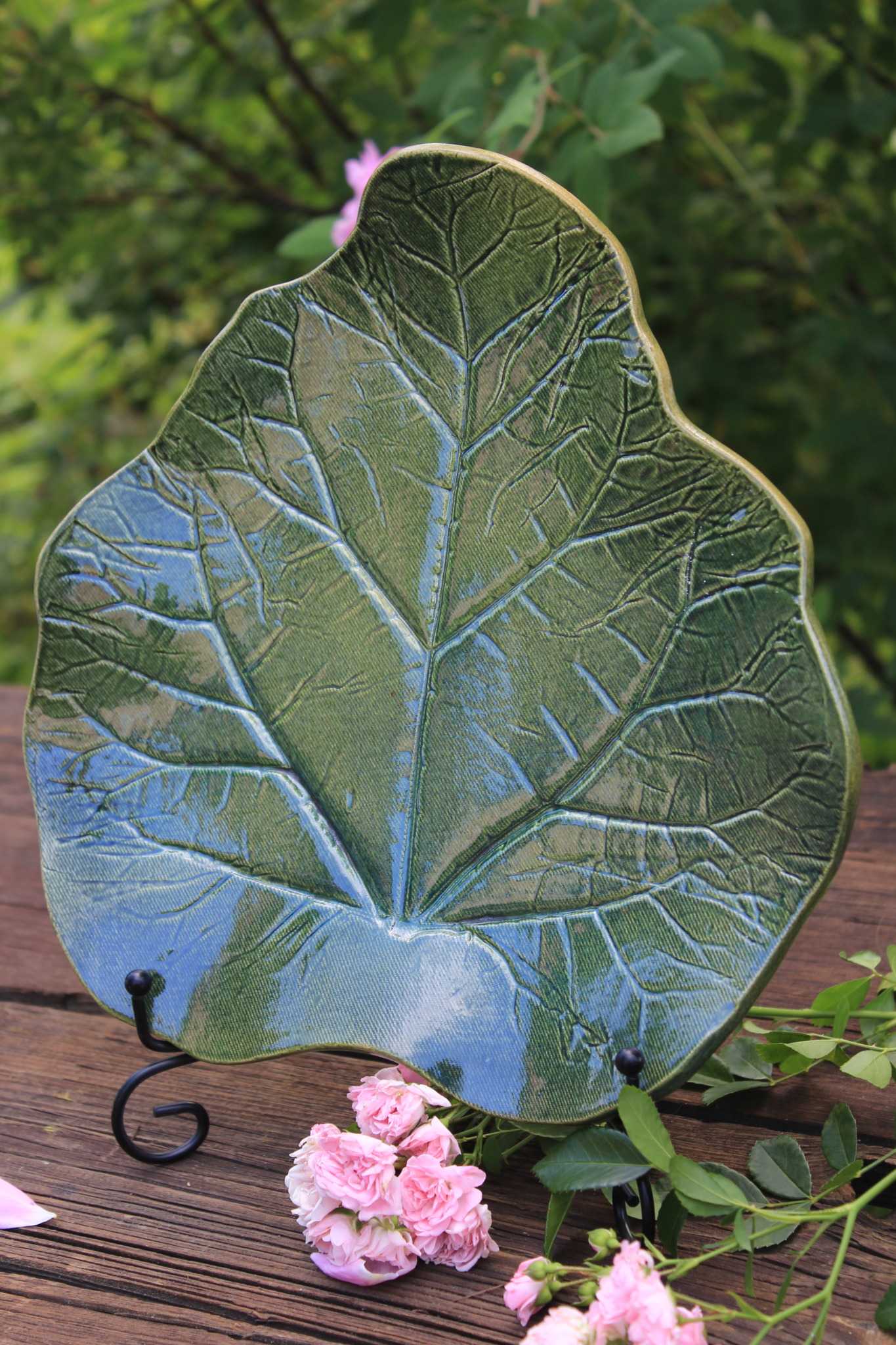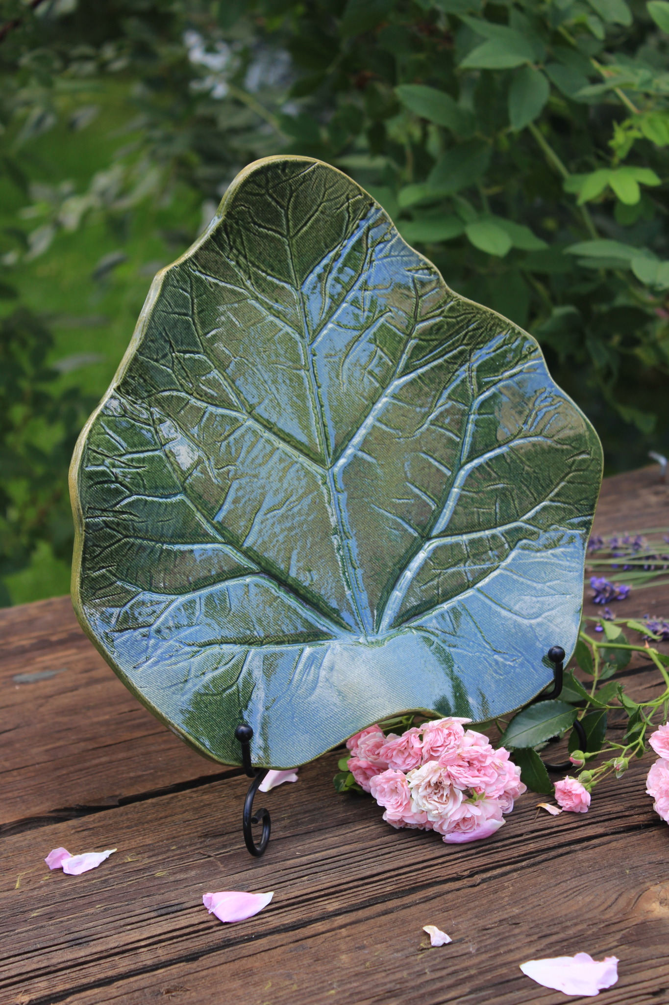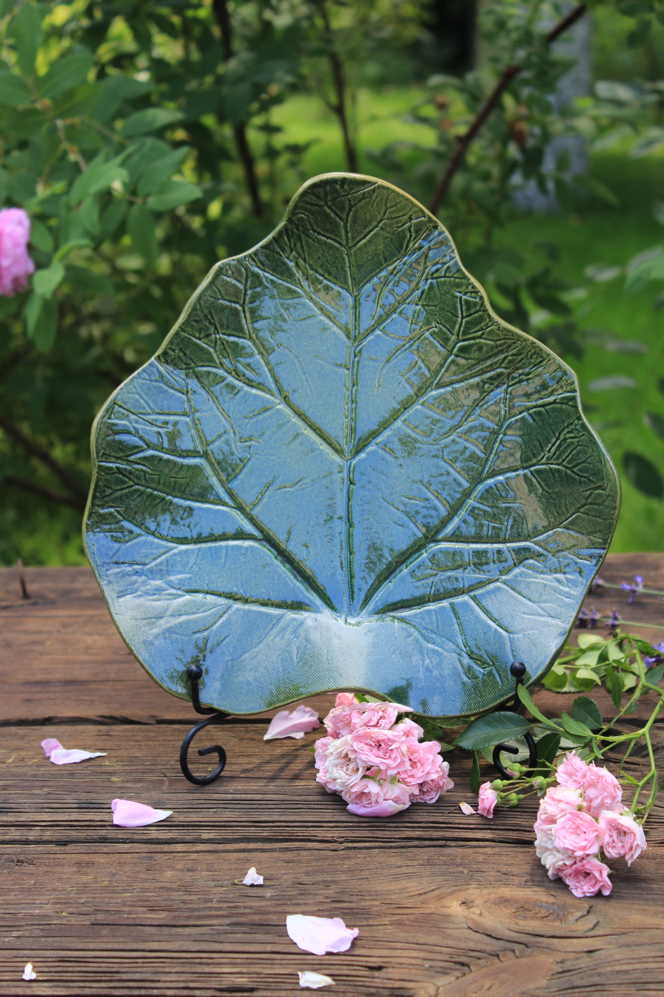 • Ceramiczna Patera w formie liścia. Patera jest dwukrotnie wypalana i obustronnie pokryta szkliwem. Sprawdzi się idealnie jako dekoracja kuchenna pod owoce lub warzywa.