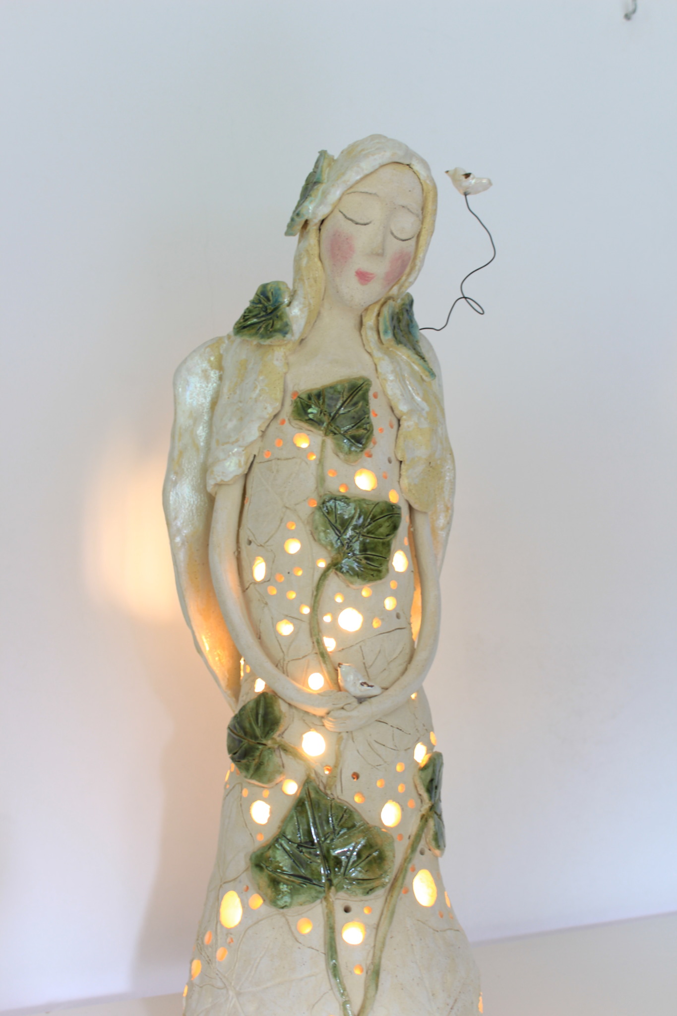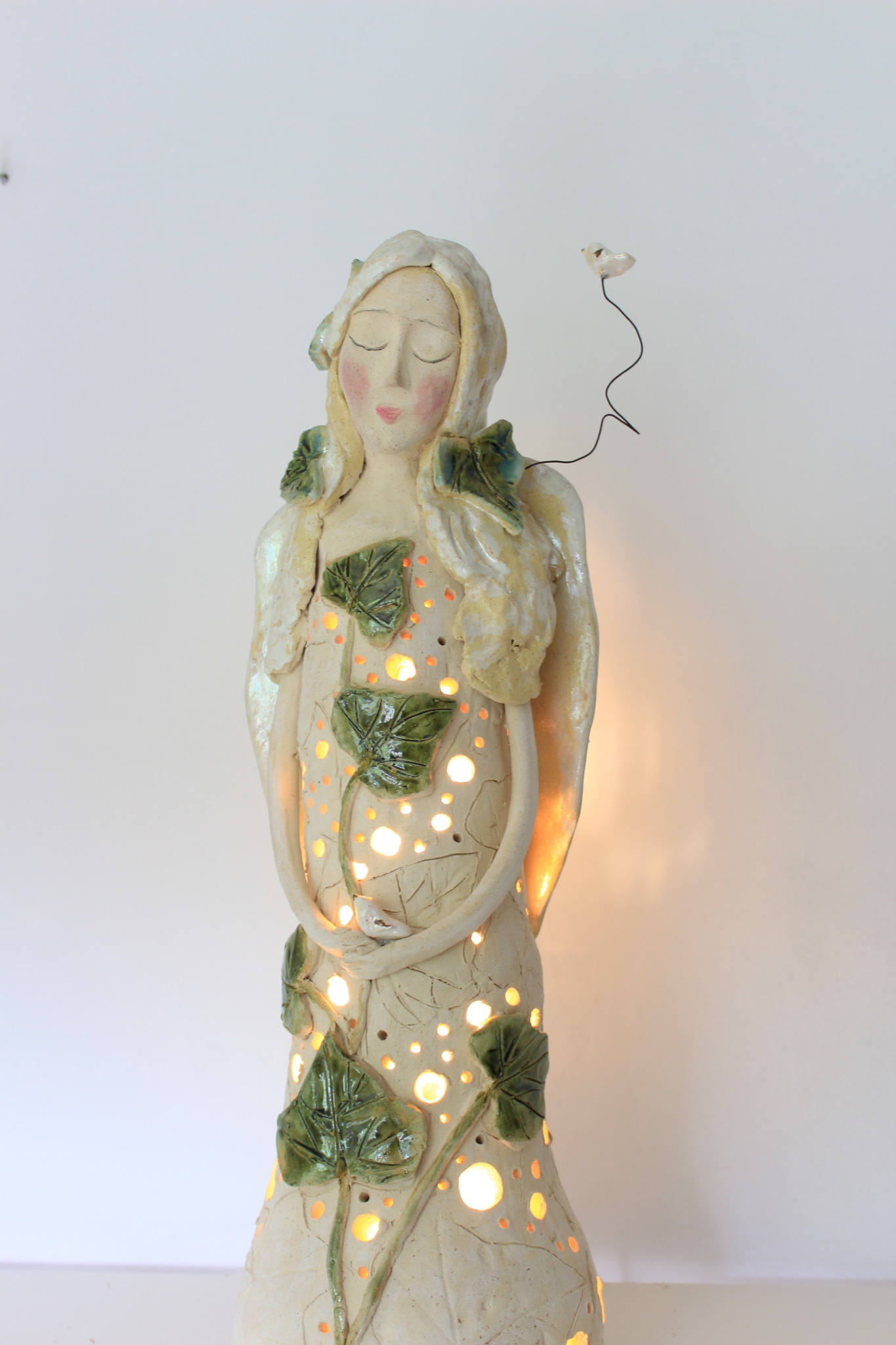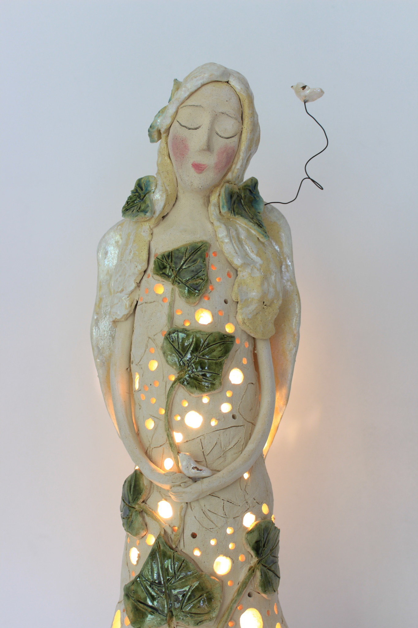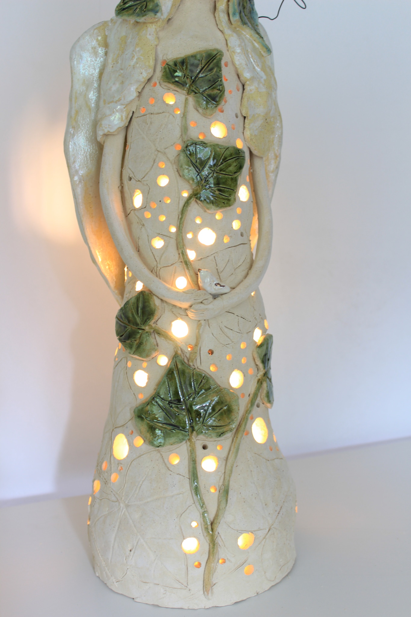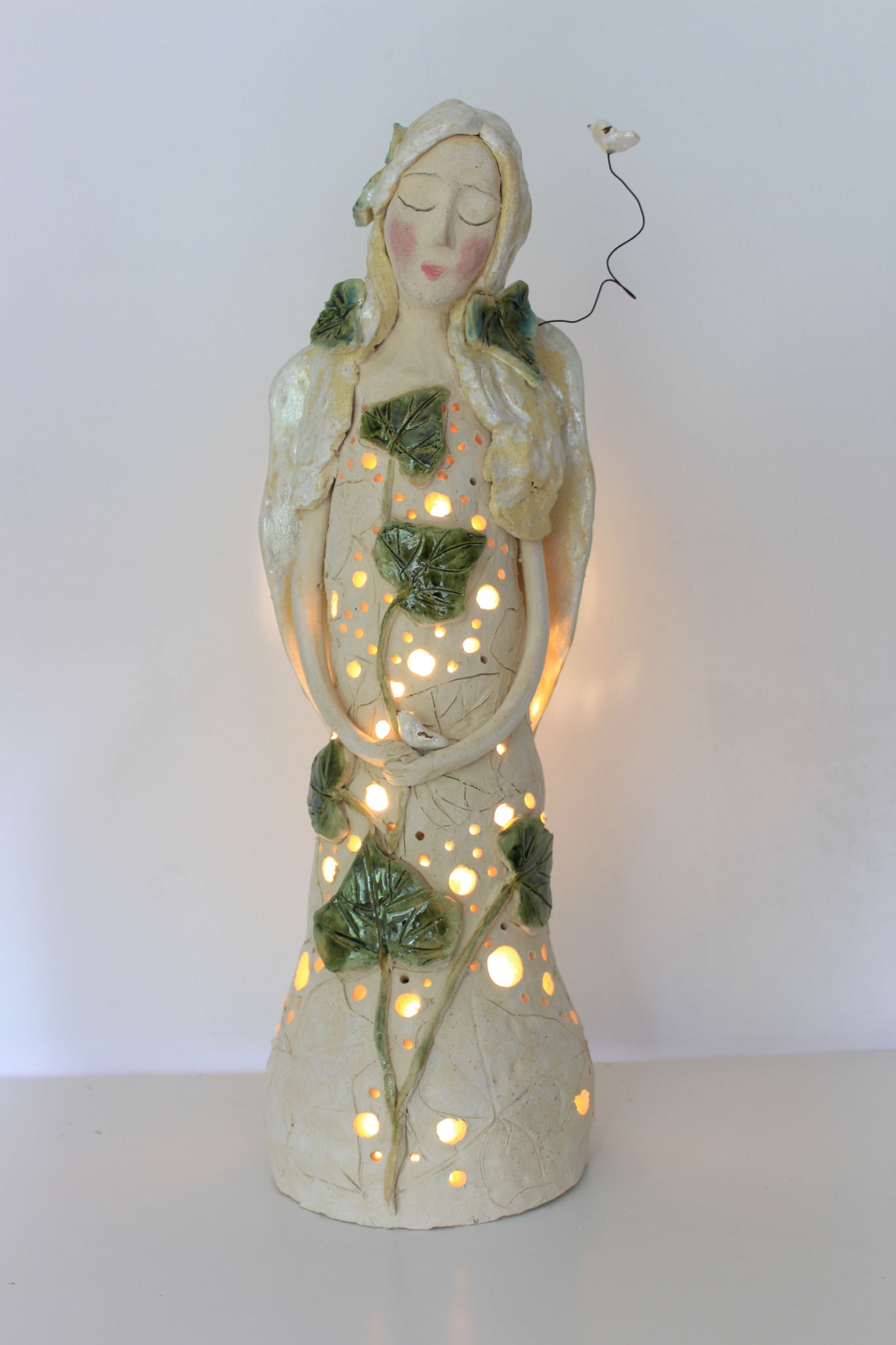 • Ceramiczna lampa w formie anioła wykonana ręcznie z gliny szamotowej w pojedynczym egzemplarzu. Lampa jest dwukrotnie wypalana oraz szkliwiona w detalach. Szczególnie polecamy tą lampę jako nieszablonową ozdobę wnętrza. Do lampy dołączona jest żarówka LED 40w wraz z oprawką oraz przewodem o długości 2m.