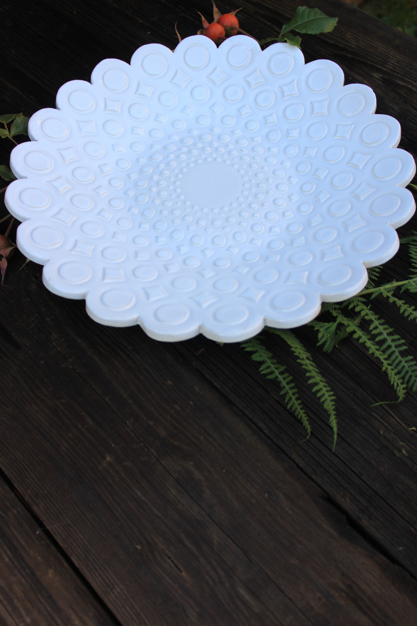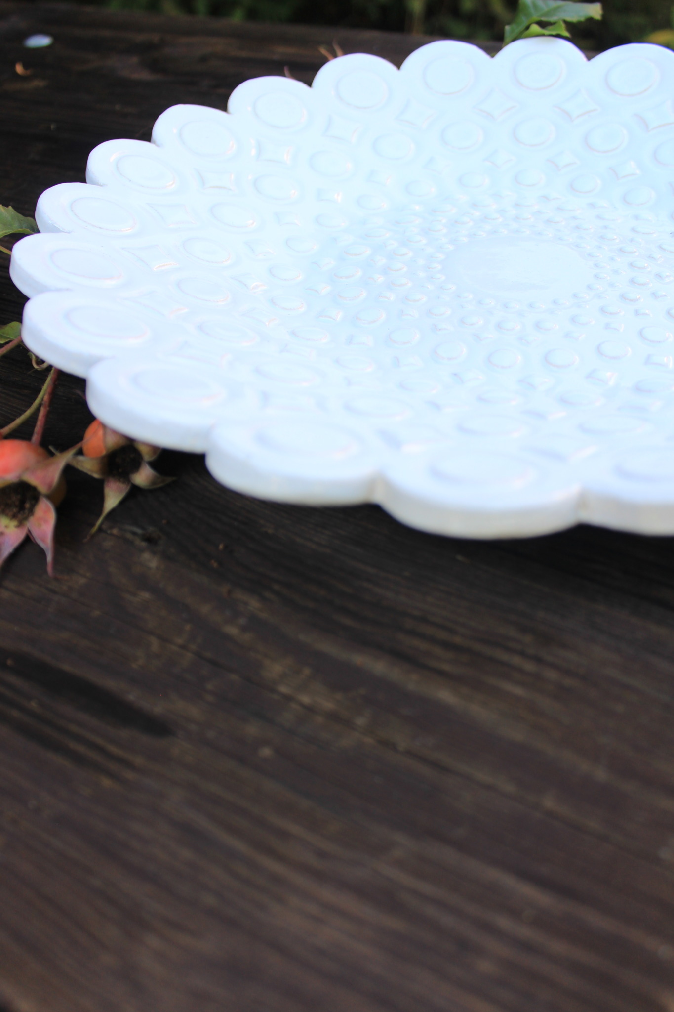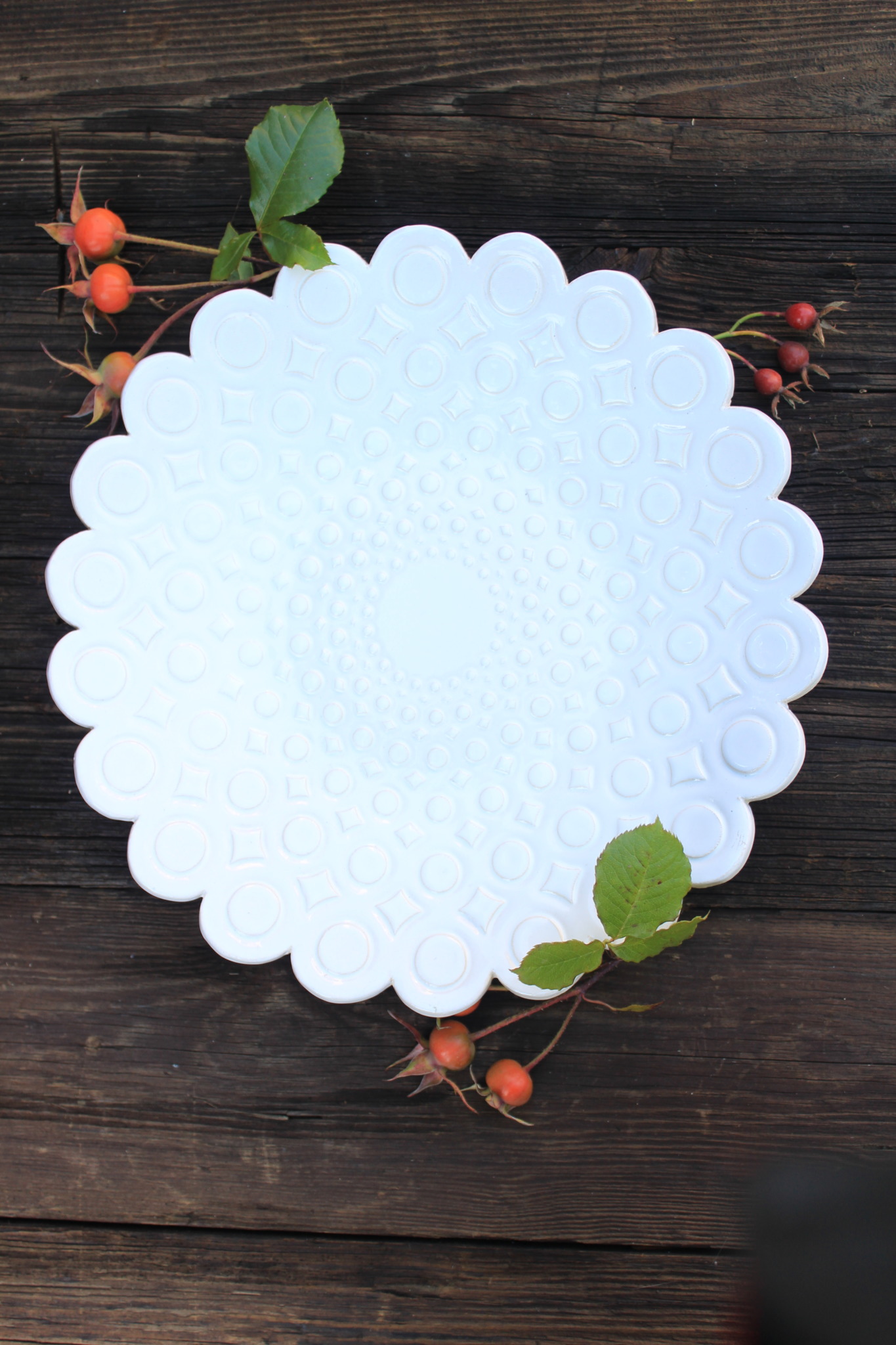 Ceramiczna Patera okrągła biała. Patera jest dwukrotnie wypalana i obustronnie pokryta szkliwem. Sprawdzi się idealnie jako dekoracja kuchenna pod owoce lub warzywa.