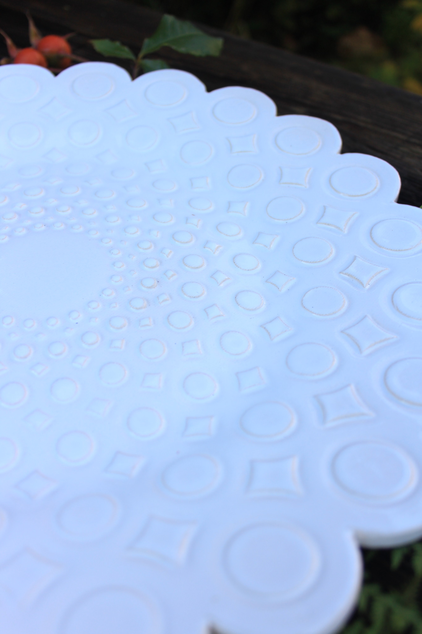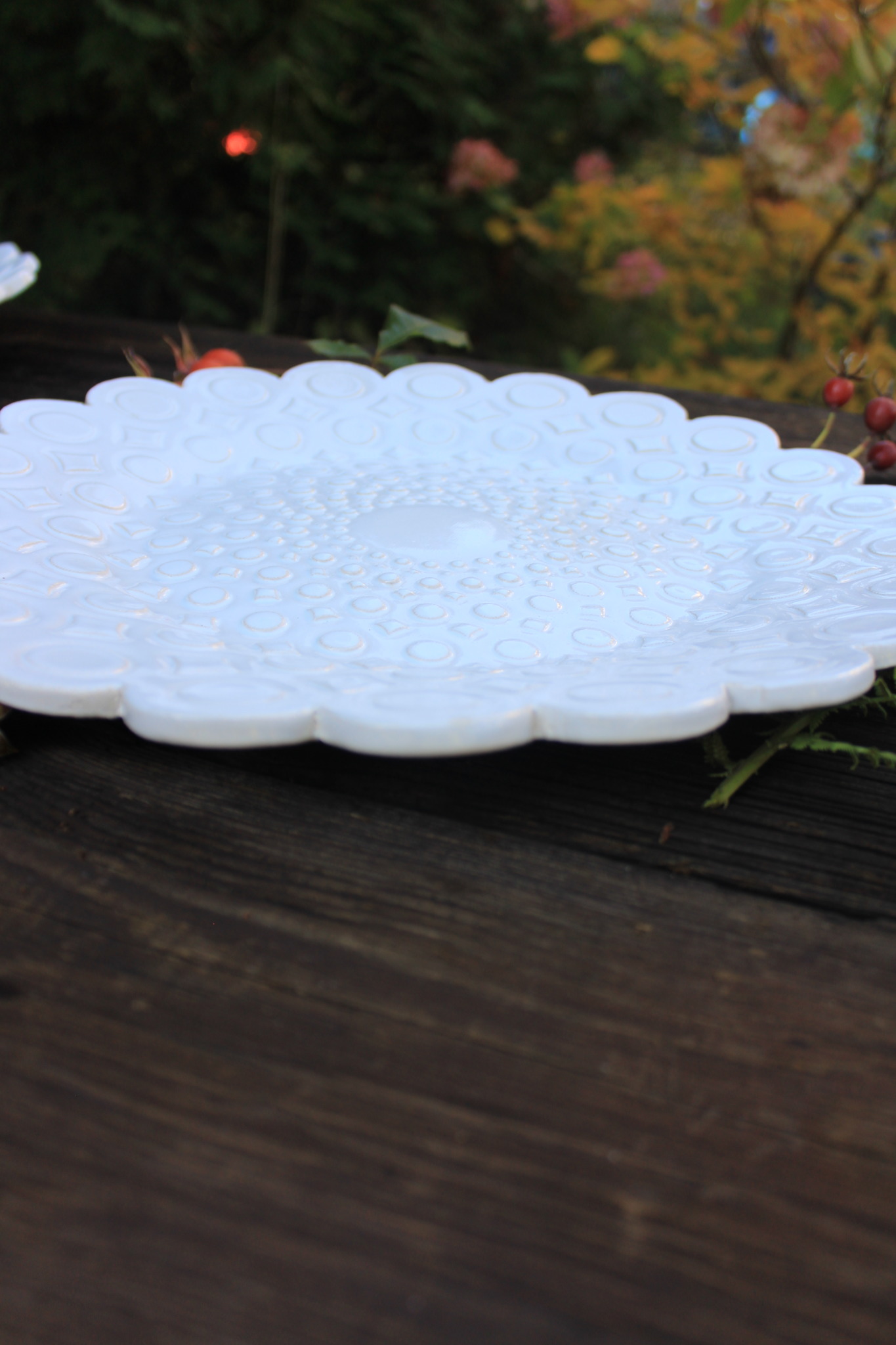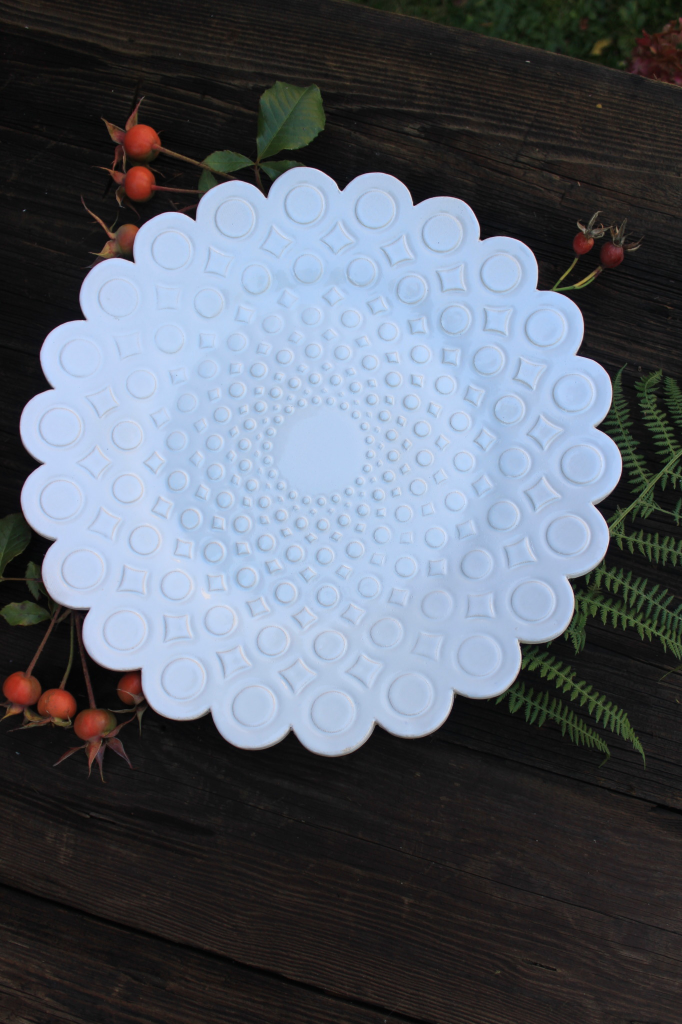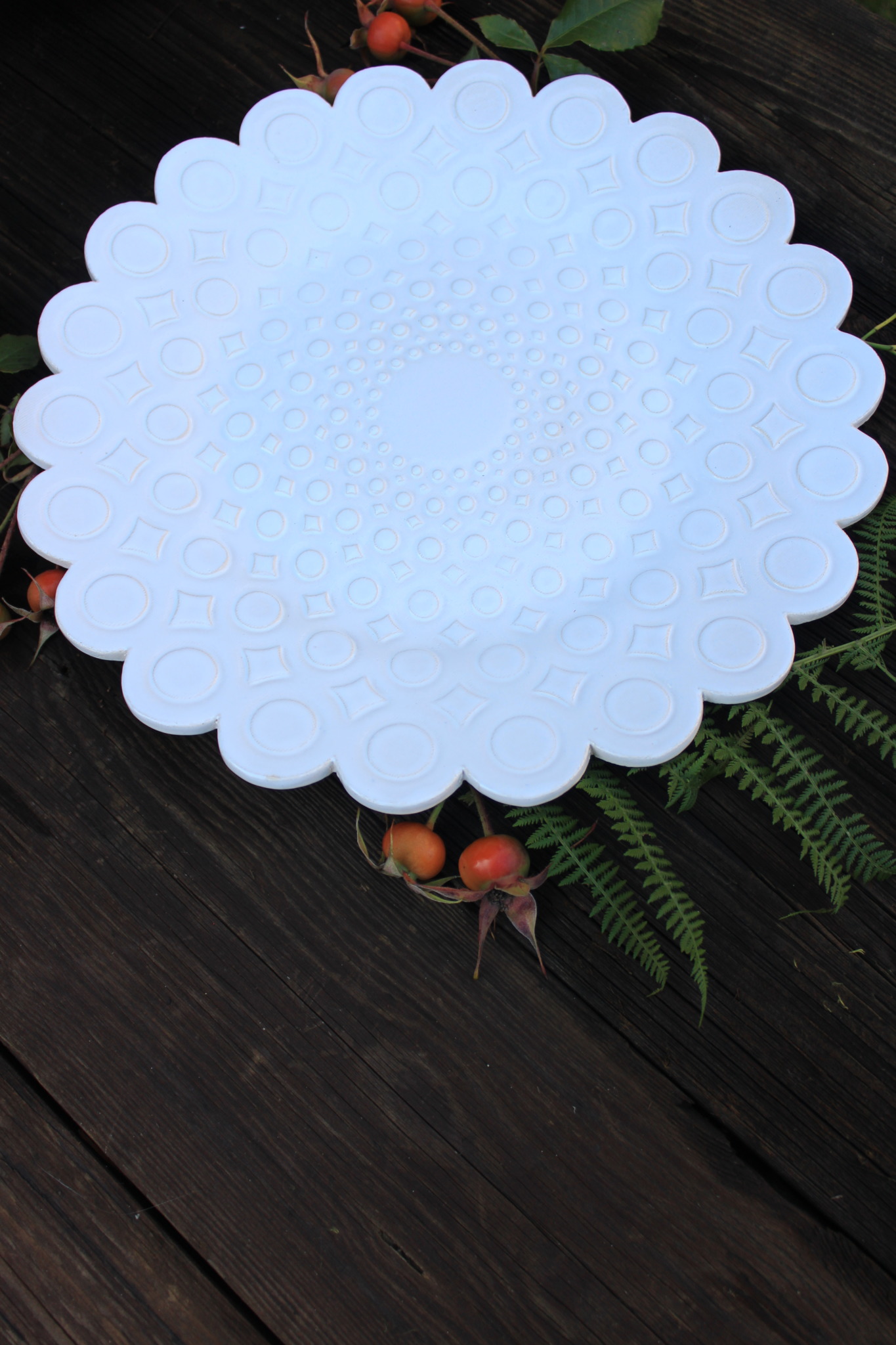 Ceramiczna Patera okrągła biała. Patera dwukrotnie wypalana i obustronnie pokryta szkliwem. Sprawdzi się idealnie jako dekoracja kuchenna pod owoce lub warzywa.