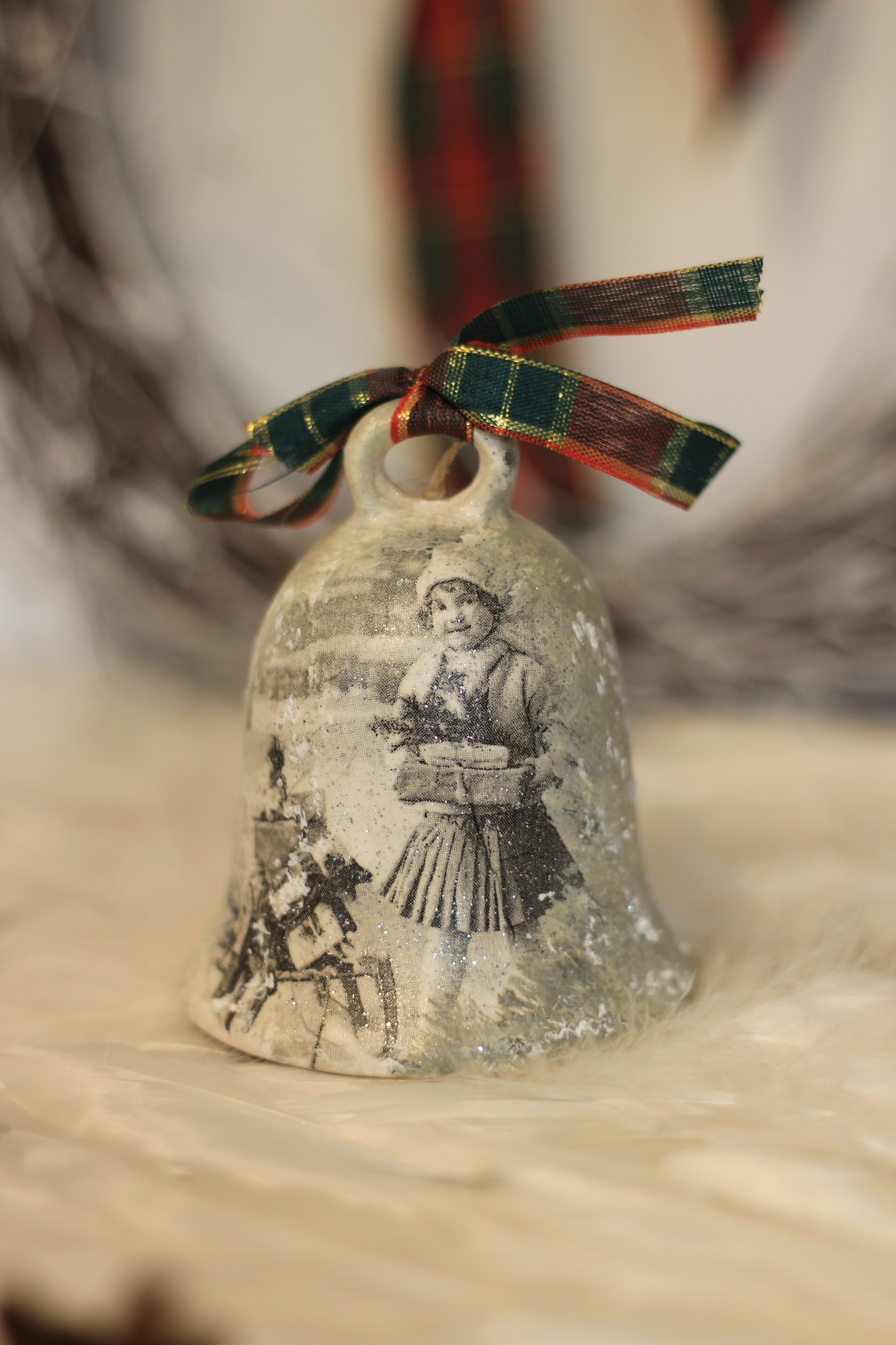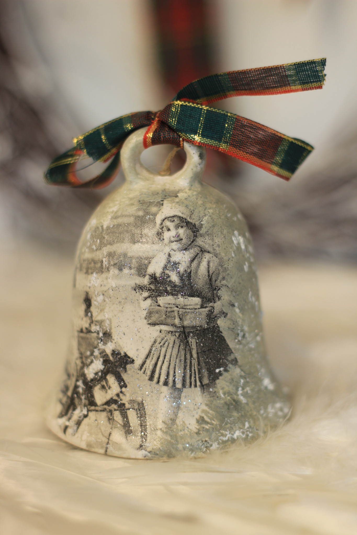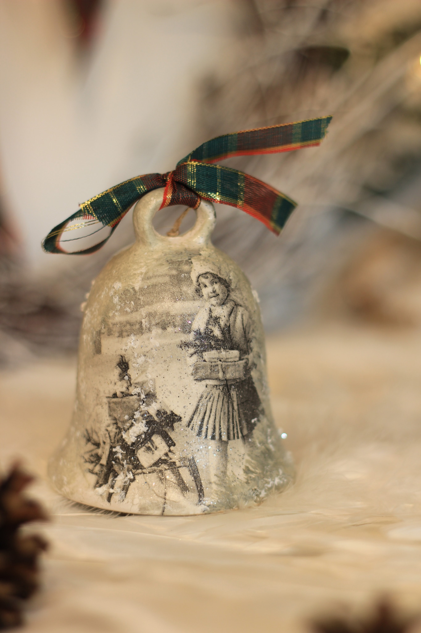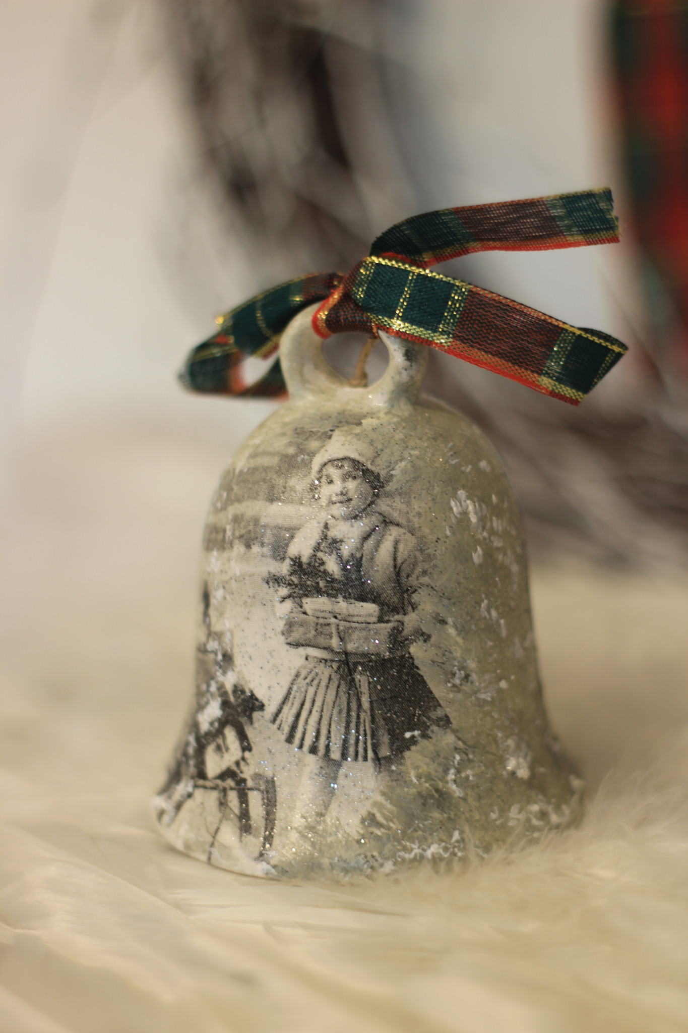 - Ceramiczny dzwonek Vintage dekorowany metodą Decoupage oraz techniką własną. Dzwonek po obu stronach przedstawia inny motyw !!!
