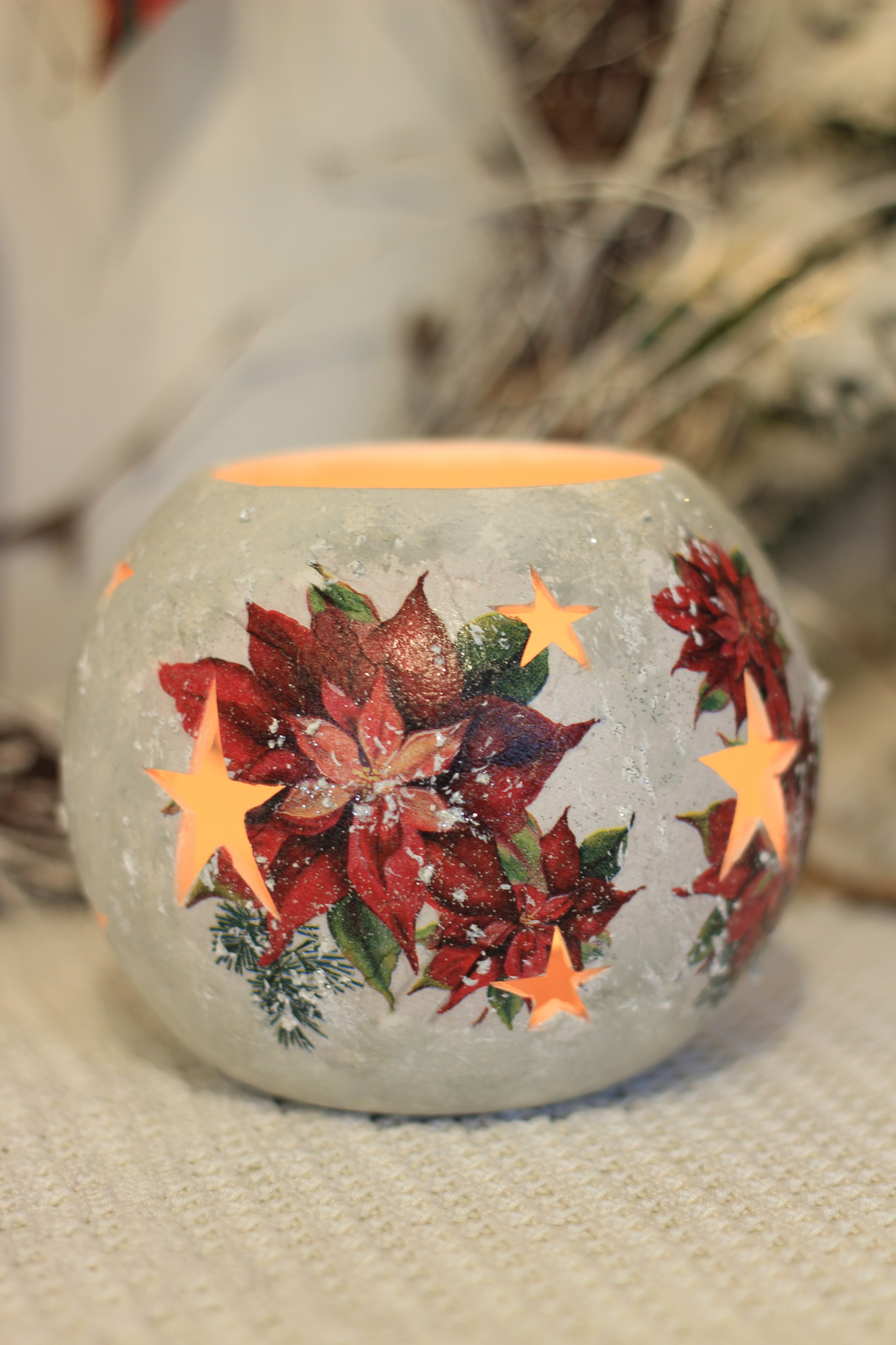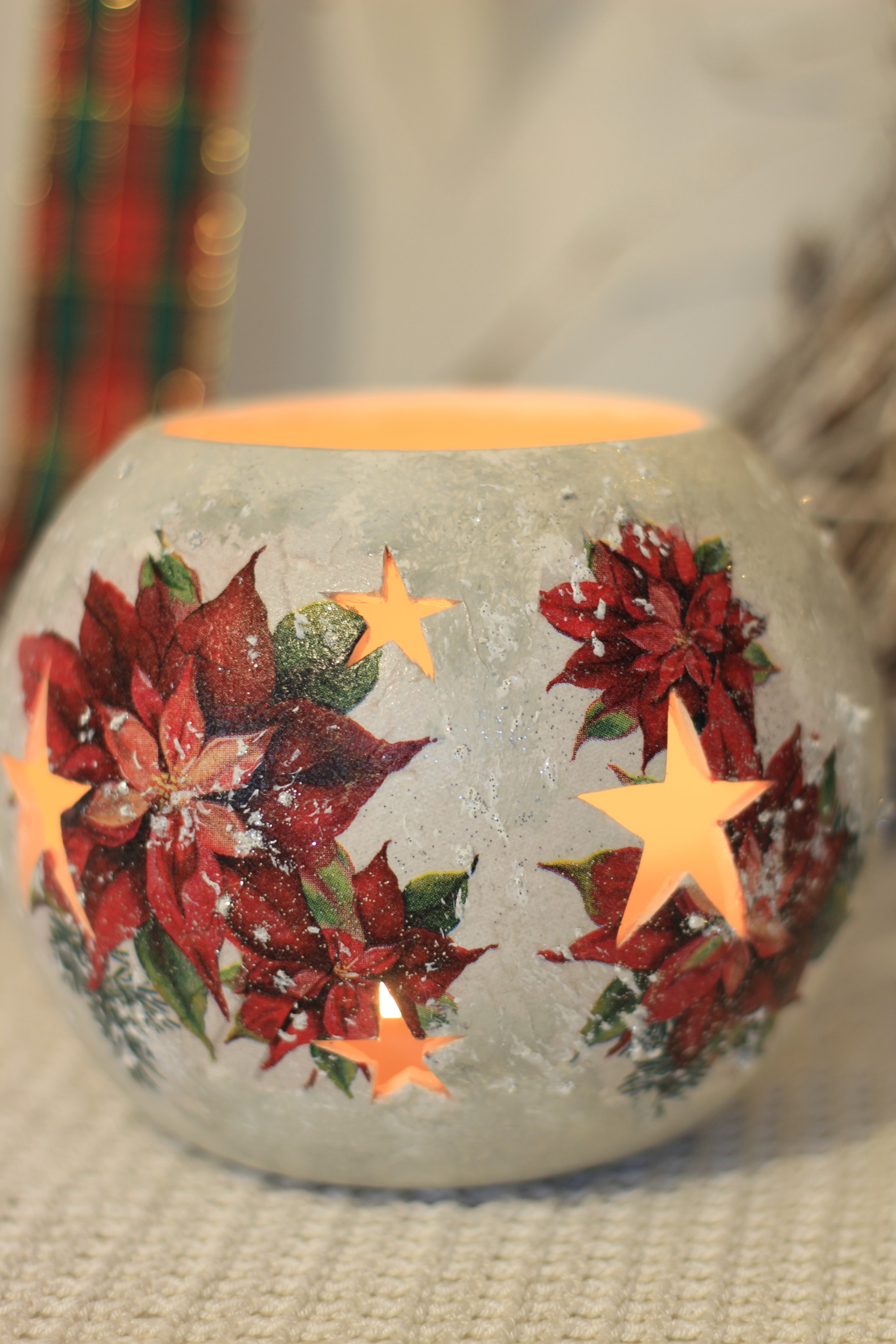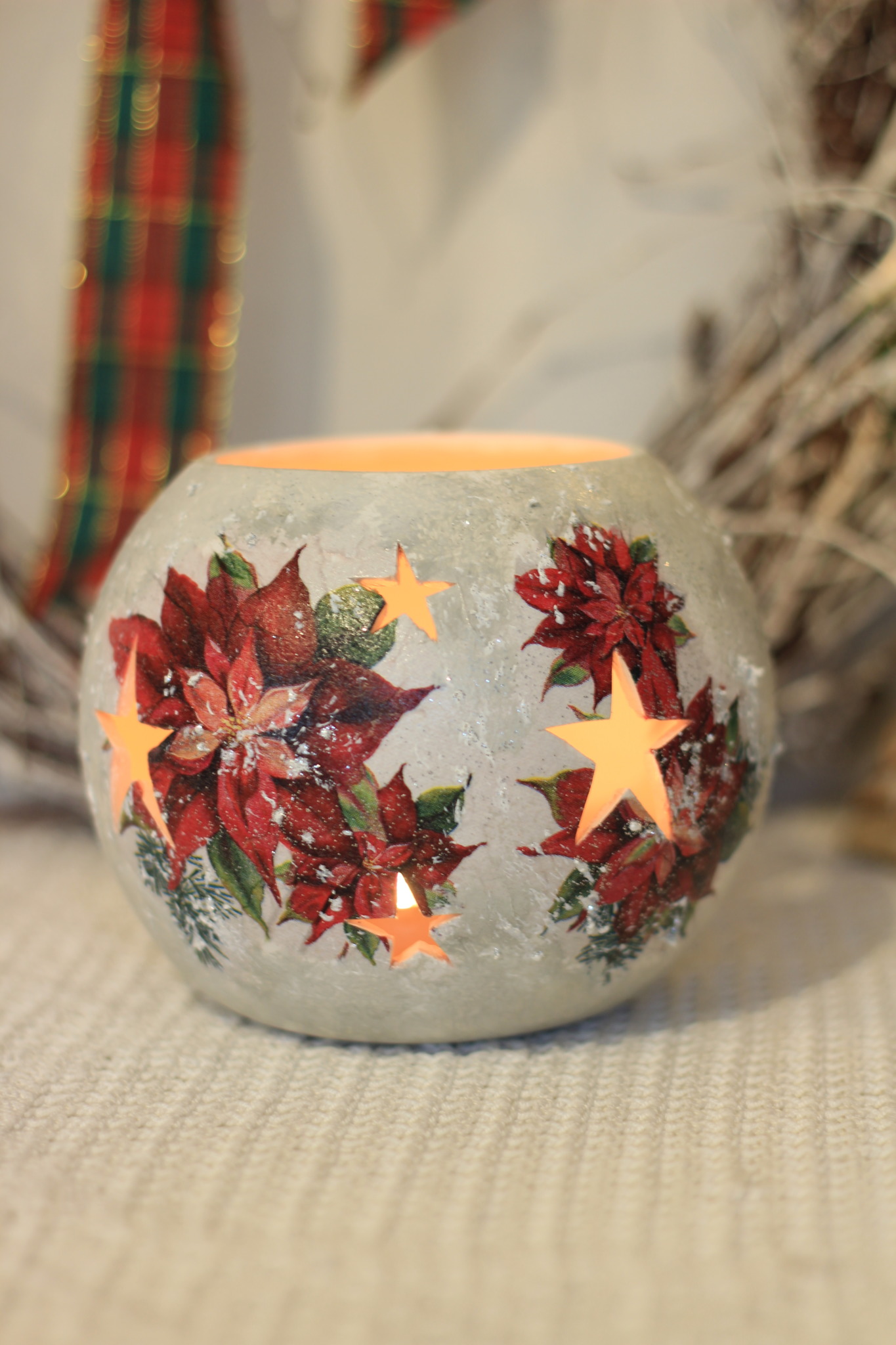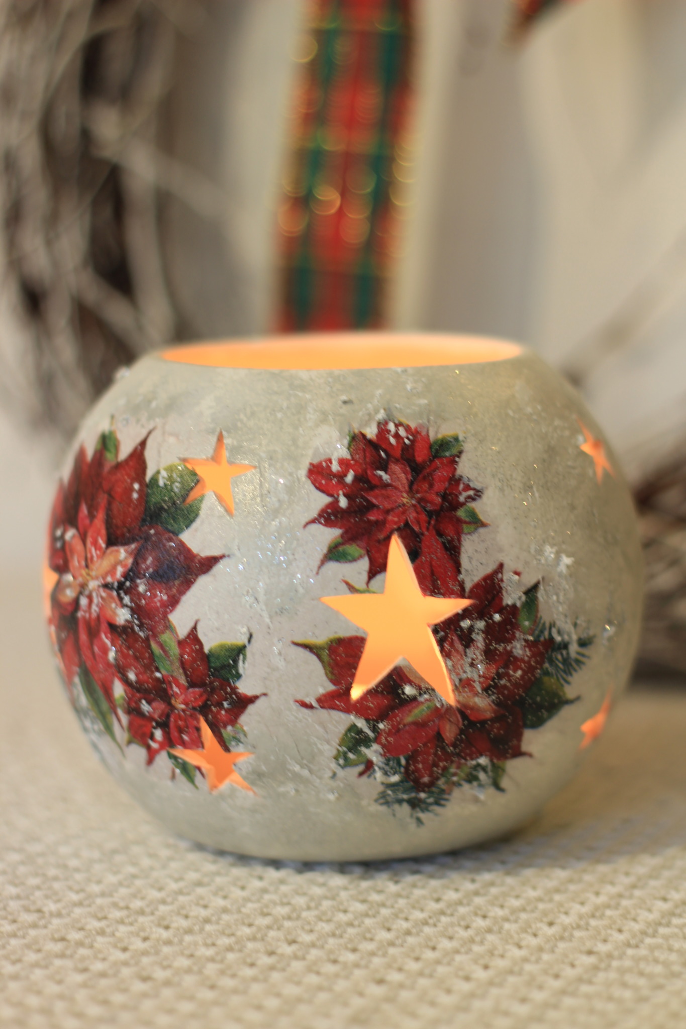 - Ceramiczny lampion bożonarodzeniowy zdobiony metodą Decoupage oraz techniką własną. Lampion po obu stronach przedstawia taki sam motyw. Do rozświetlenia lampionu najlepiej nadają się świeczki typu tealight. Lampiony są idealną świąteczną ozdobą na stół, parapet lub kominek.